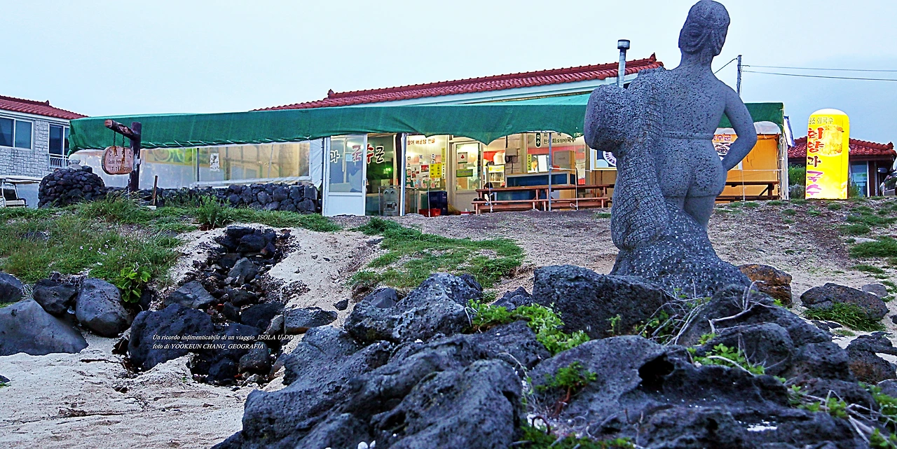 우도에 어둠이 내리자 사람들의 발길이 뜸해진 이곳. 우도를 찾은 사람들은 저마다 먹거리를 찾아 떠난다. 화산암으로 제주의 비바리 모습을 조각한 해녀상 너머로 불이 켜진 집 안에서는 사람들이 기분 좋게 떠드는 소리가 들린다. 여행지에서 맛있게 먹은 먹거리는 여행지를 오래도록 기억나게 해 주는 마법 같은 존재일까. 우도를 다녀온 지 어느덧 보름이 다 돼 가지만 맛에 대한 기억은 유별나 후기를 쓰면서까지 그 맛이 입안에 감돌며 침샘을 자극한다. 도대체 방어회가 어땠길래...