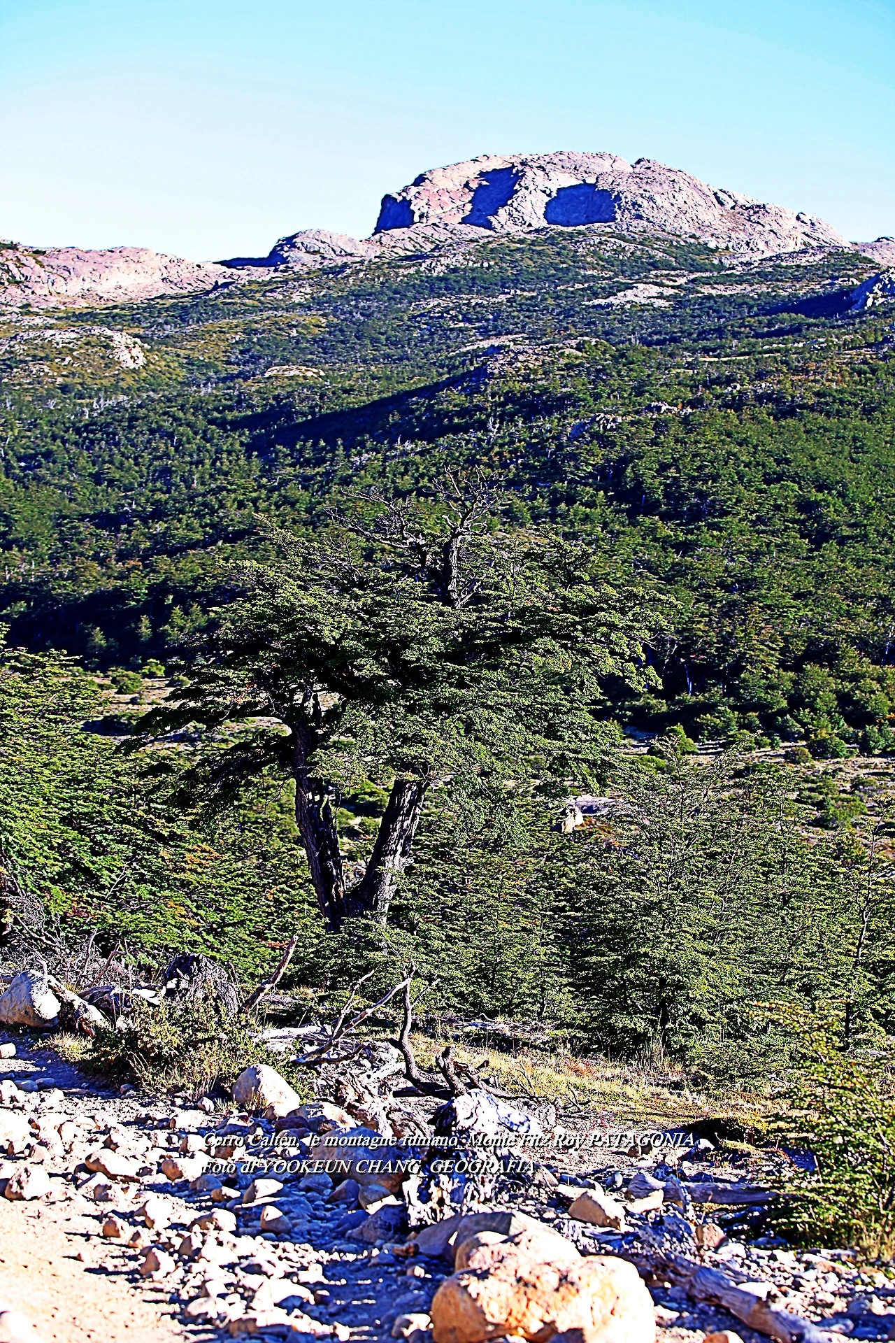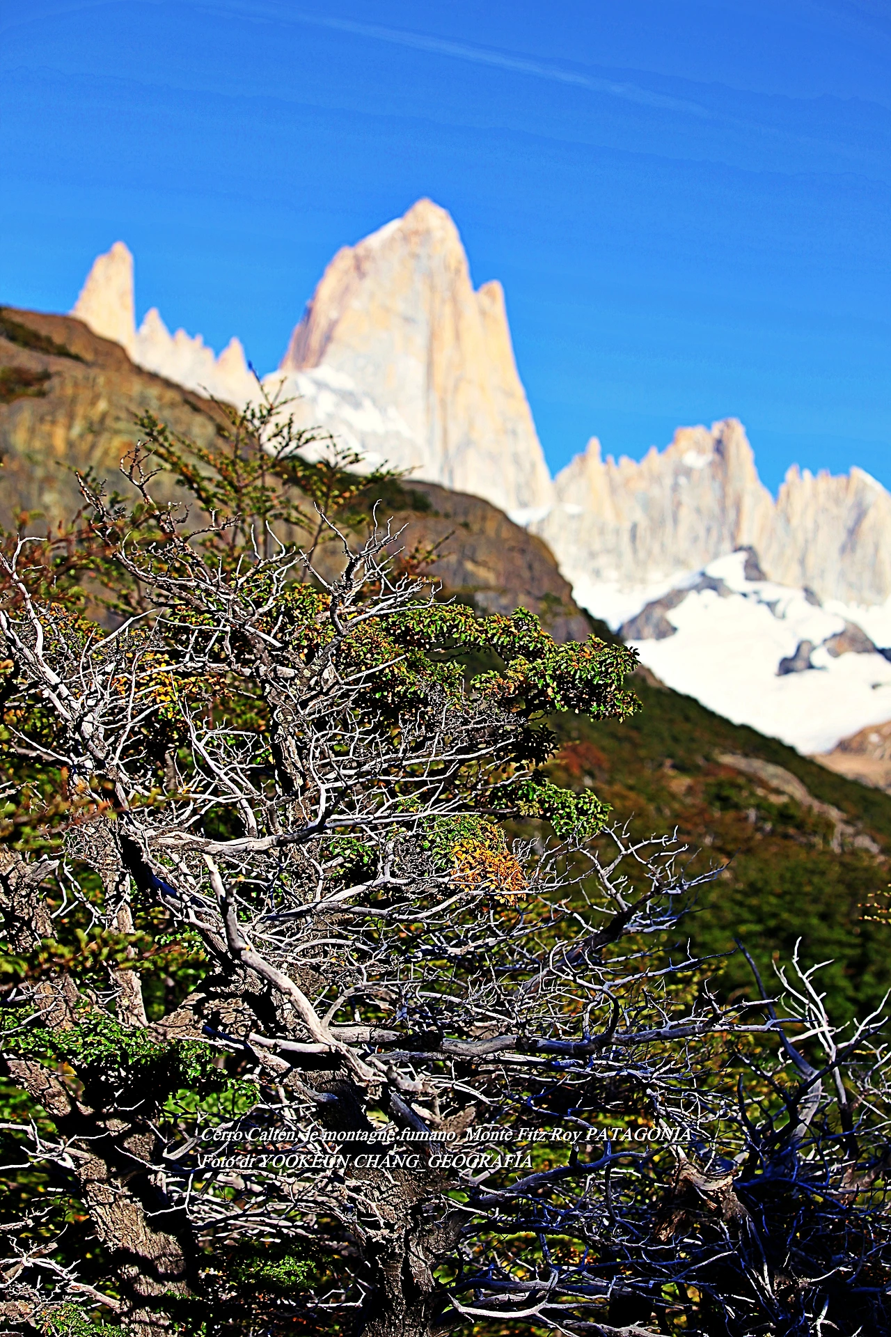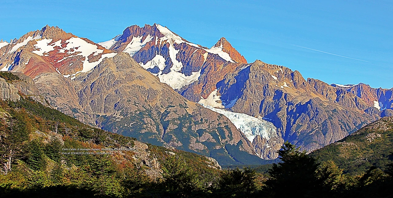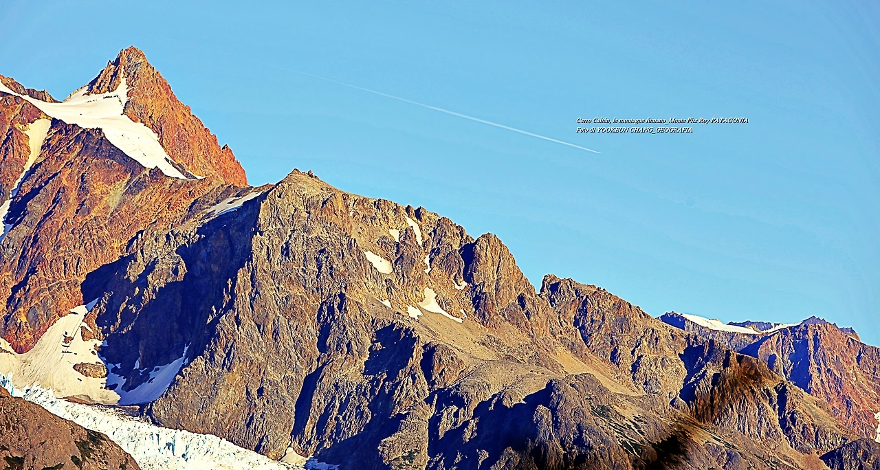 il parco nazionale Los Glaciares, nella provincia di Santa Cruz, e dalla parte cilena, forma parte del parco nazionale Bernardo O'Higgins. Raggiunge un'altezza di 3.405 metri sul livello del mare. 자료출처: https://it.wikipedia.org/wiki/Monte_Fitz_Roy