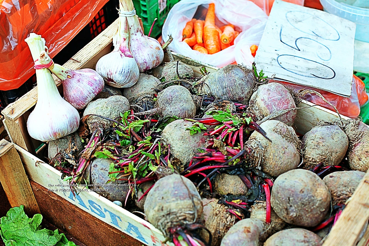 요즘 제철을 만난 마늘은 두세 쪽에 1유로의 비싼 값에 팔린다. 나는 아직도 이곳 사람들이 햇마늘을 선호하는 이유를 잘 모른다. 조금만 더 기다리면 1kg에 1유로 혹은 1.5유로 팔려나가므로 그때까지 기다린다. 우리가 즐겨 먹고 있는 마늘이 주로 그렇고 우리 집 냉장고에 보관 중인 찧은 마늘도 그때 구입한 것이다. 그리고 그 곁에 먹음직스러운 비트(Beetroot)가 덩그러니 놓여있다.