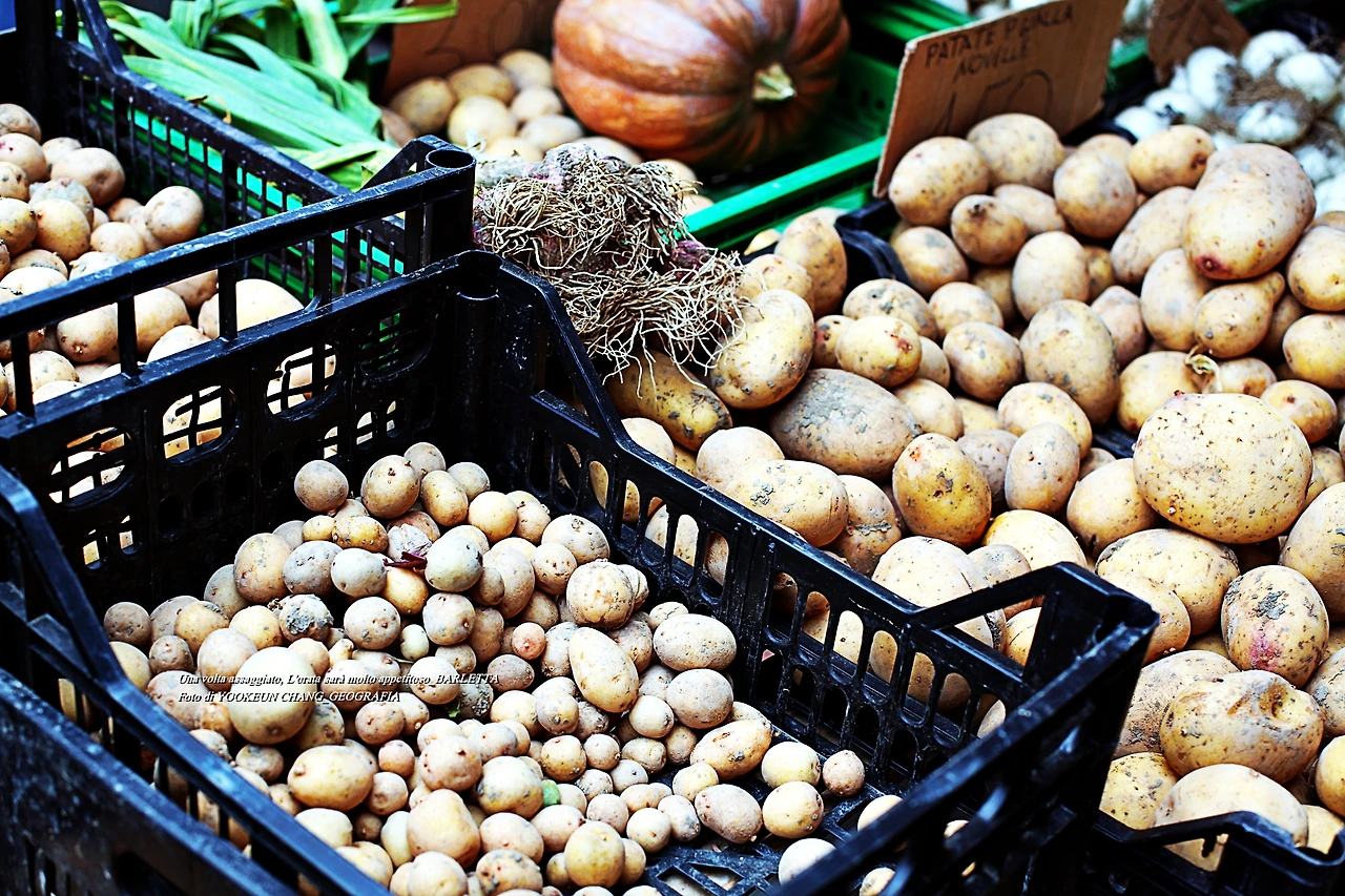 시장을 천천히 돌아보면 재밌는 풍경이 등장한다. 위 자료사진에 등장하는 감자는 두 종류는 좌측은 씨감자로 자잘하다. 우측은 우리가 자주 만난 감자로 씨감자에 비하면 덩치가 큰 차이를 보인다. 씨감자는 다음 해에 다시 심기 위한 목적으로 선별한 감자를 말하는데. 번식을 위해 만든 일종의 종자이다. 요 녀석을 구입해 감자전을 부쳐 먹으니 기막혔다.