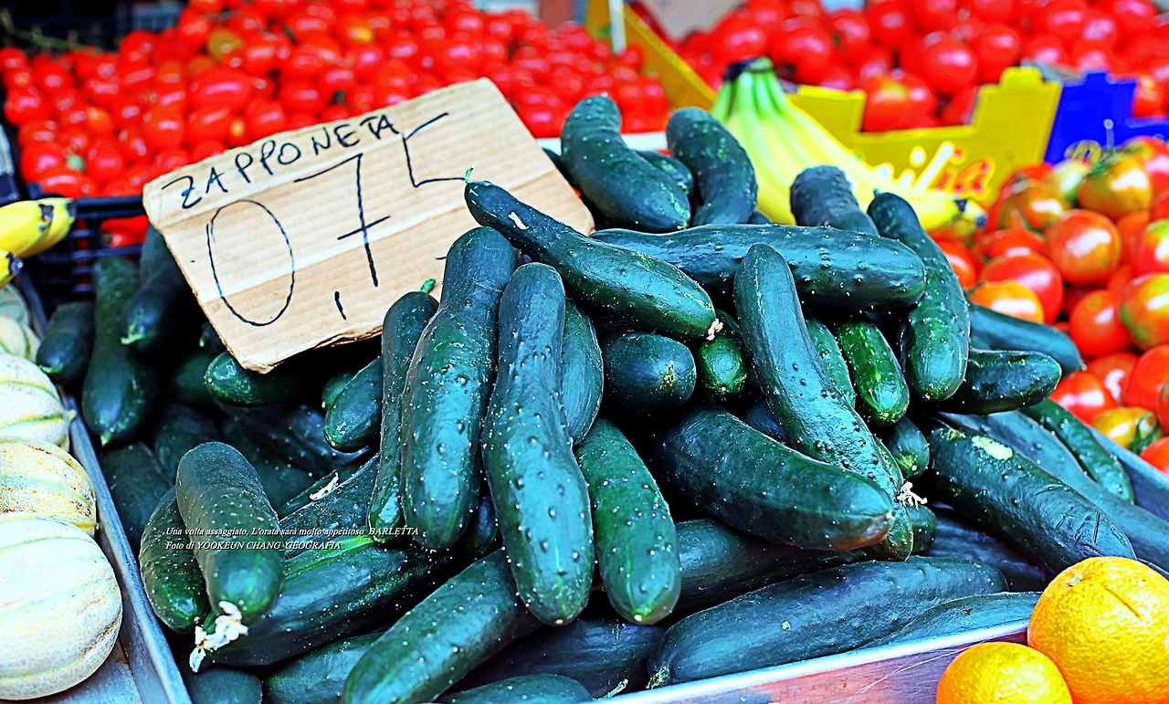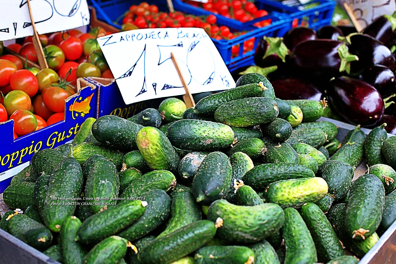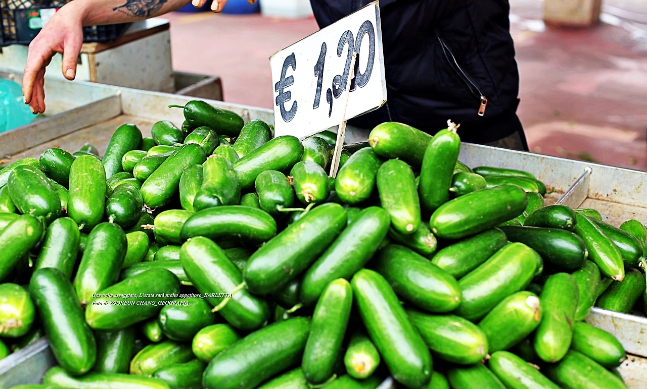 4월 말 현재 이곳 재래시장에 출하되는 제철 과일과 채소들 중에 유독 눈에 띄는 게 이탈리아 오이이다. 맛과 향은 물론 식감이 매우 뛰어나다. 언제인가 이탈리아 여행을 떠나시면 꼭 한 번 맛보시기 바란다.