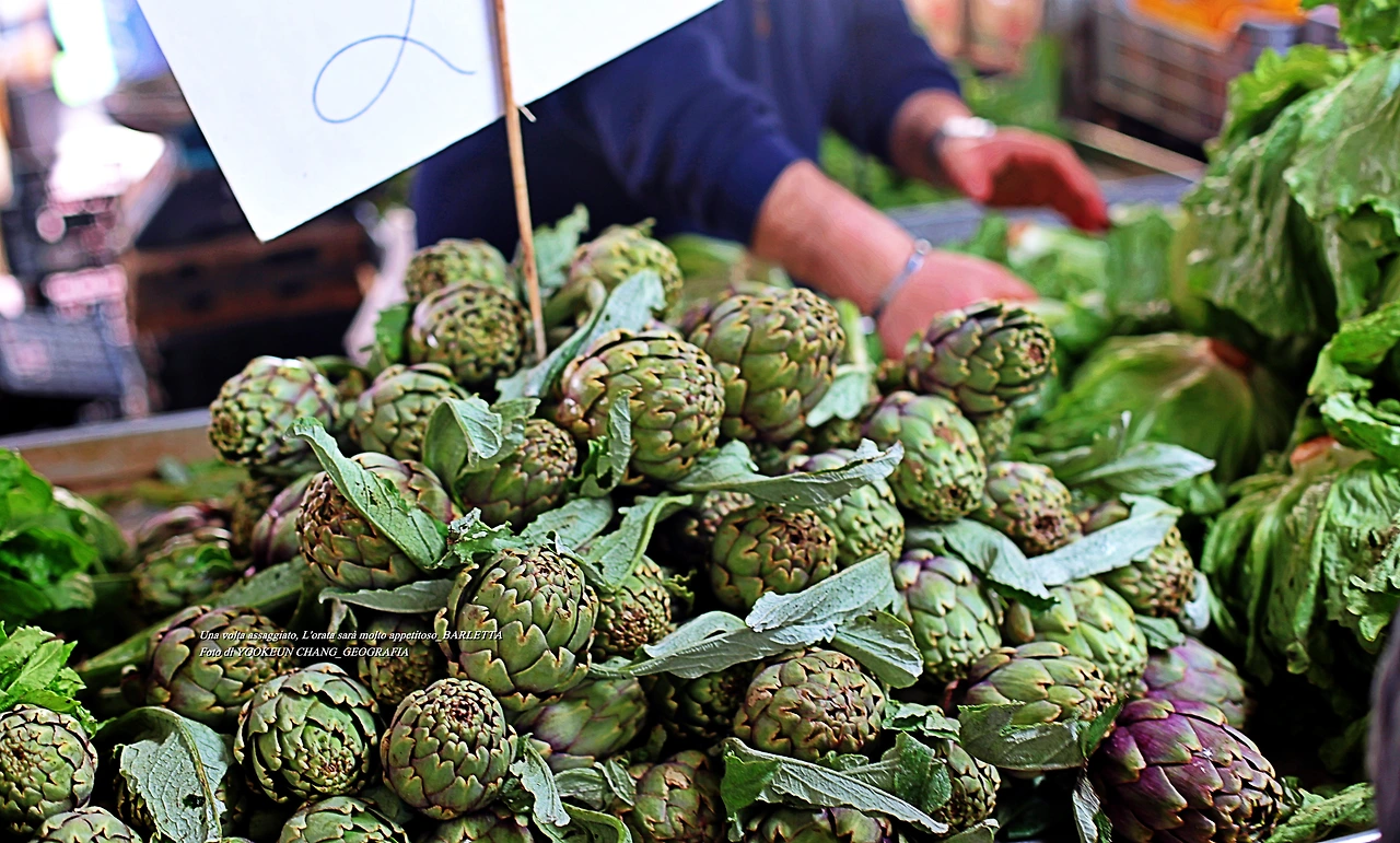 그리고 싱싱한 까르치오피(carciofi, 아티초크)가 사람들의 눈길을 끌고 있다. 봄이 오시면 넘쳐나는 녀석이지만 이곳 사람들은 까르치오피의 효능을 잘 알고 있으므로 거의 매일 장바구니에 담아 간다. 까르치오피는 서양의 불로초로 널리 알려졌으며 간 건강 과 혈중 중성지방, 콜레스테롤 개선에 뛰어난 작용을 하는 것으로 알려졌다. 그뿐 아니라 고혈압 환자의 수축기, 이완기 혈압을 개선하는 것으로 알려진 신비의 식재료라고나 할까..
