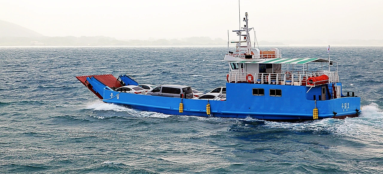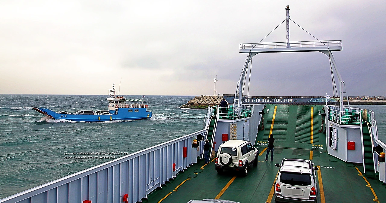 우도로 가는 배시간은 성산 출발 5월~8월까지 매시간 정각과 30분이므로 항해 시간이 매우 짧다. 참고로 성산항을 출항하는 첫배는 07:00 시이며 마지막 배는 18:30분이다. 우도에는 두 개의 선착장이 있는데 천진항과 하우목동항이 있다. 천진항을 출항하는 배는 매시 30분(첫배는 07:00)이며, 하우목동항의 출항은 매시 정각(마지막 배는 18:30)이다. 우리를 태운 배는 하우목동항이 목적지이다.