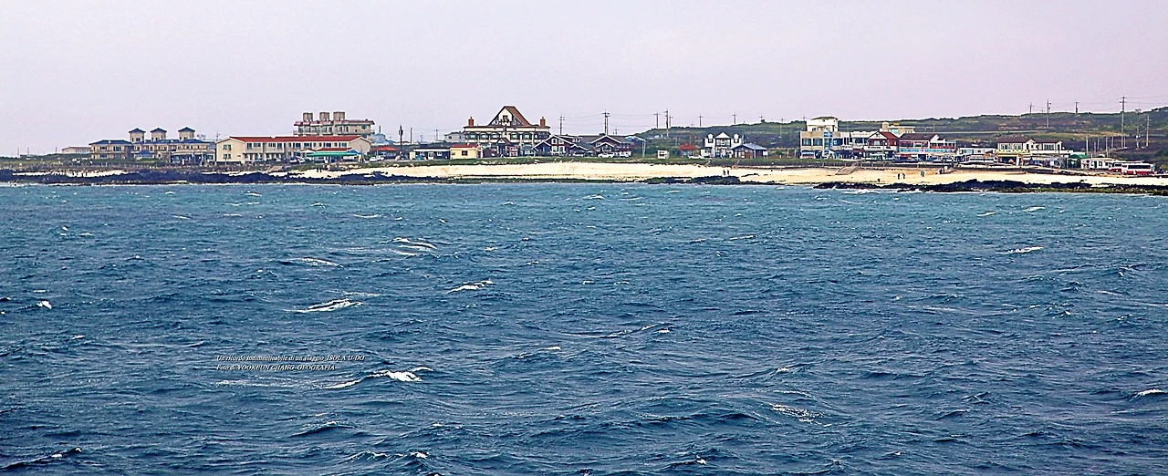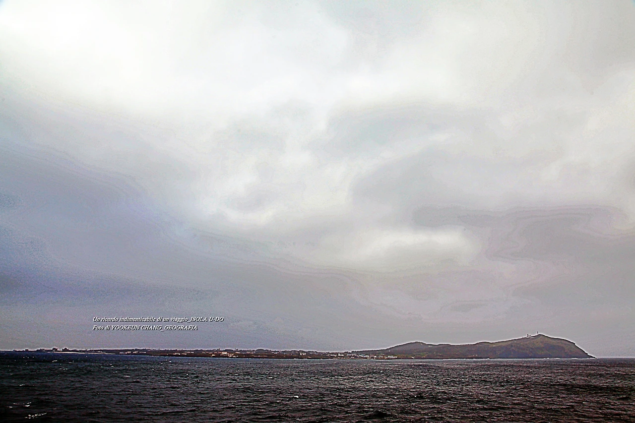 성산 항을 출항한 지 얼마 되지 않은 시간에 저 멀리 우도가 바다 위에 드러누워있다. 주지하다시피 우도(牛島)는 제주도의 동쪽 끝에 접한 섬으로, 제주특별자치도에서 제주도 다음으로 큰 섬이다. 우도란 이름은 섬의 모습이 소가 누워 있는 것 같다고 해서 붙여졌다. 얼핏 봐서는 소의 형상이 보이지 않는다. 그러나 그게 다 무슨 소용이랴..