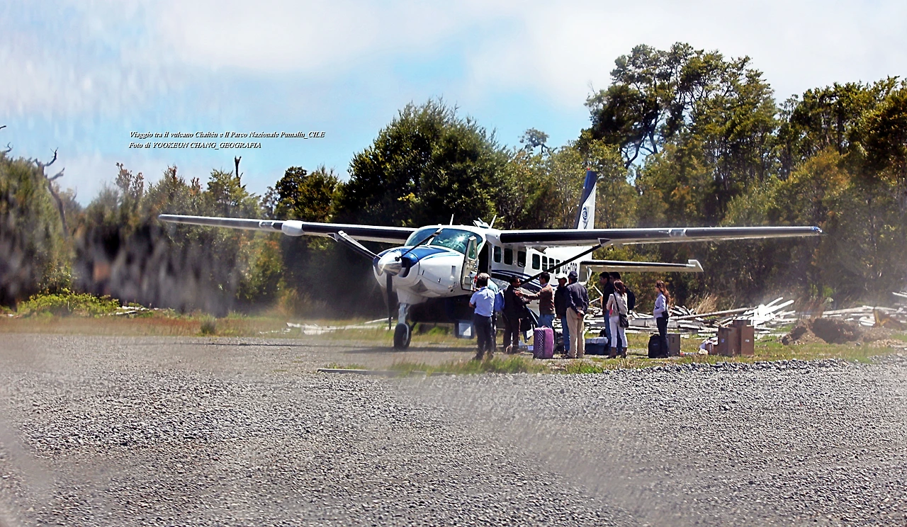 경비행기 한 대가 손님과 화물을 하역하는 이곳은 남미 칠레의 로스 라고스 주에 위치한 차이텐(Chaitén)이라는 곳이다. 하니와 나는 뿌에르또 몬뜨에서 출발하여 오르노삐렌과 주변의 명소들을 둘러보고 차이텐으로 이동했다. 그곳은 칠레의 뿌말린 국립공원이 지근거리에 있으며 차이텐은 칠로에 섬을 바라보고 있는 인구 1만 명 정도가 살고 있는 도시였다.