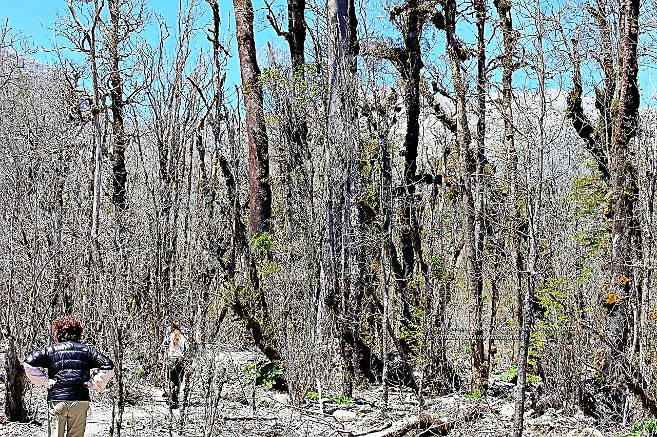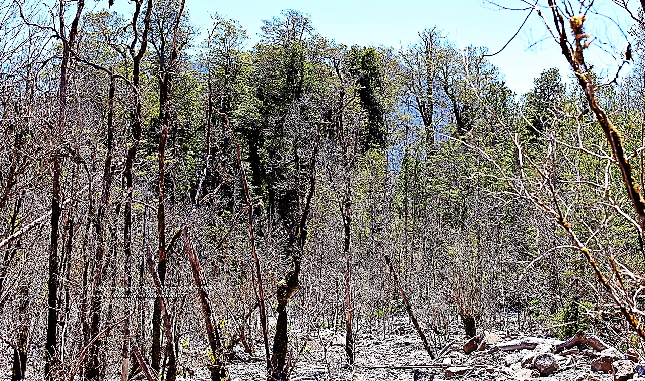 목적지에 다다르자 맨 먼저 우릴 반긴 건 불에 그을린 나무들이었다.