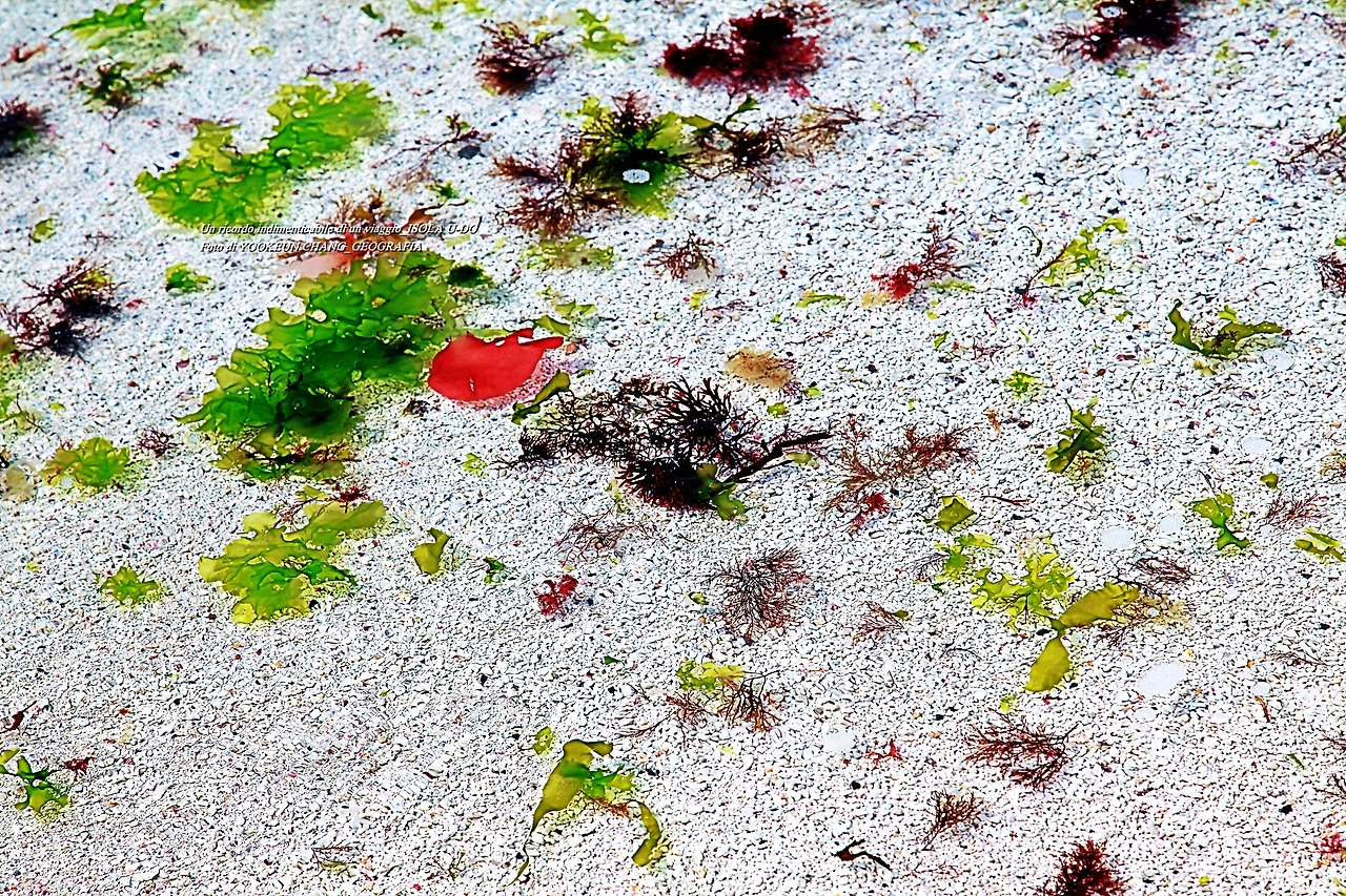 서빈백사에는 홍조단괴가 빚어낸 특별한 풍경 외에도 맑고 푸른 물에 떠밀려온 해초들이 신세계를 연출하고 있다. 개인적으로 이런 풍경을 너무도 좋아한다. 좋아하는 정도가 아니라 꼭 껴안아 주고 싶다. 손으로..