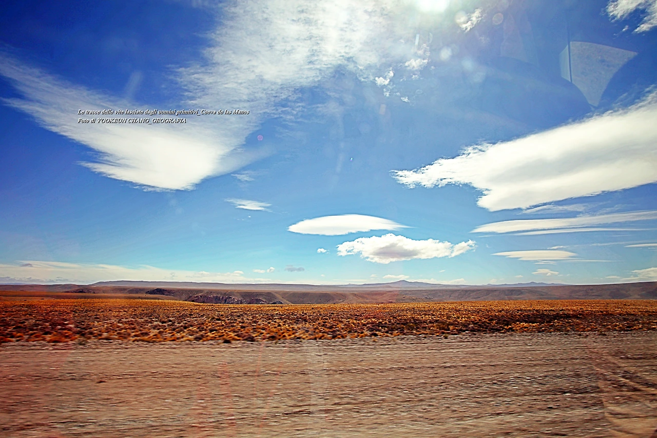 입국 심사가 끝나고 뻬리또 모레노로 가는 길은 바람이 몸씨도 불었다. 그리고 아르헨티나 특유의 팜파스 지형이 길고 넓게 펼쳐지면서 장차 우리가 만난 손바닥 그림을 상상하고 있는 것이다. 암각화가 그려진 목적지까지는 눈에 크게 띄는 비경은 보이지 않았다. 다만 원시인들이 살았던 동굴 주변에는 다른 지역에서 볼 수 없는 흙들이 계곡 곳곳에 산재해 있는 것을 볼 수 있었다.