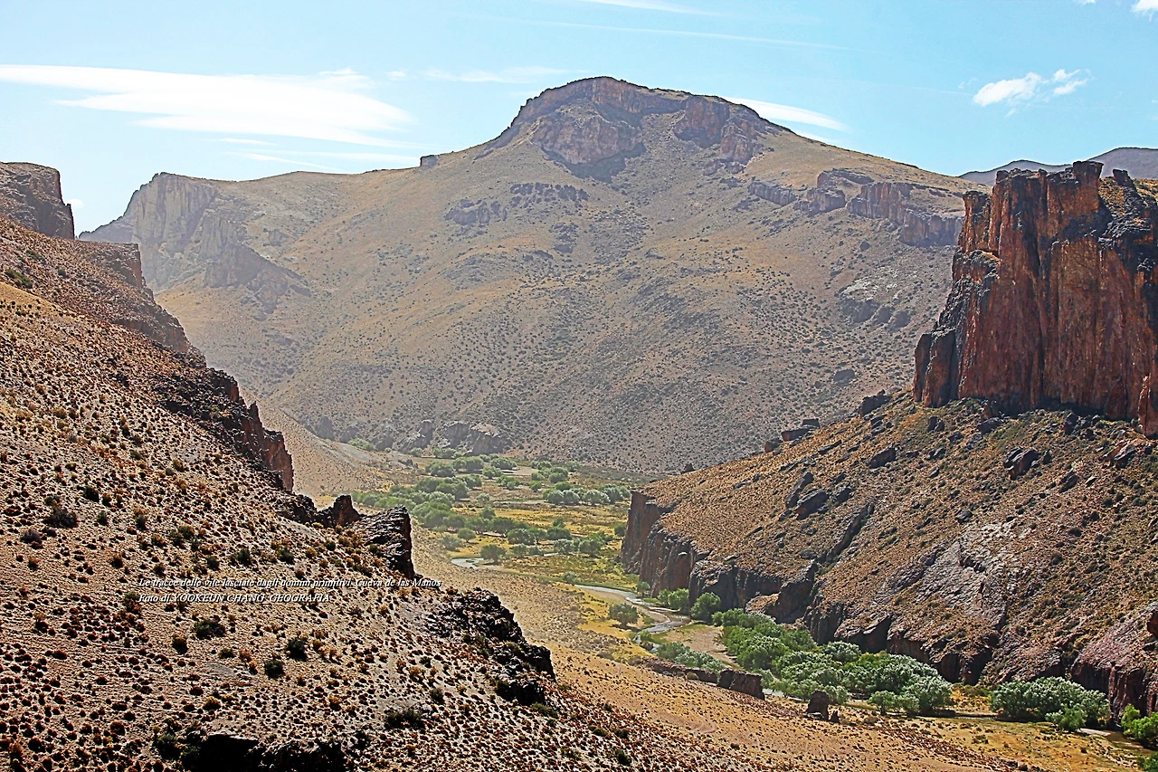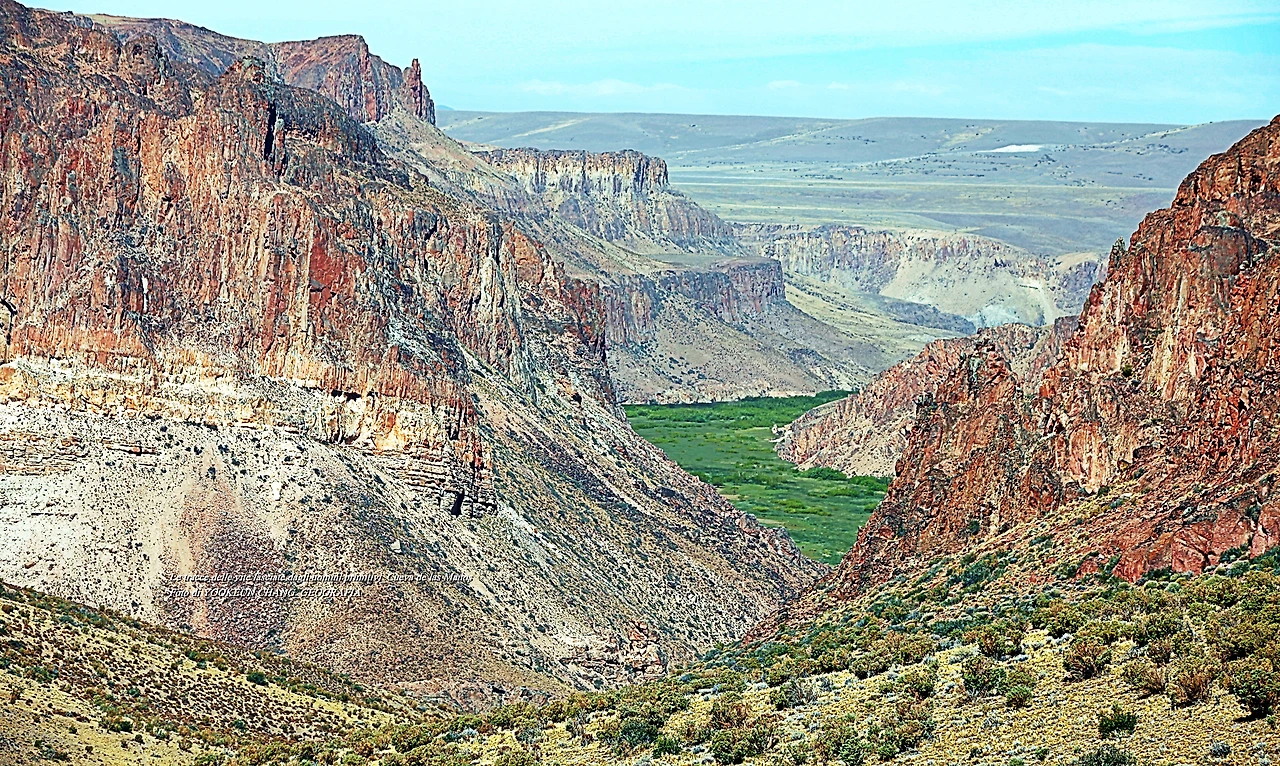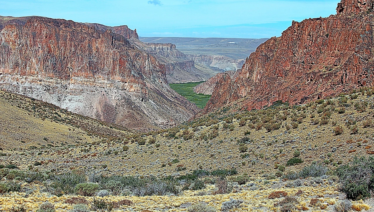 칠레-아르헨티나 국경에서 입국 심사를 기다리면서 둘러본 풍경은 낯설다. 이미 다 아시는 사실이지만 안데스 산맥을 중심으로 둘로 나뉜 칠레와 아르헨티나의 풍경은 사뭇 다르다. 칠레가 주로 산지와 강으로 이루어져 있다면, 아르헨타나는 허허벌판이 길게 이어지고 있다. 팜파스(Pampas) 지역이 대부분을 차지하고 있는 가운데 1만 년 전 원시인들이 살았던 리오 삔투라스는 계곡을 이루고 강이 흐르고 있는 것이다.