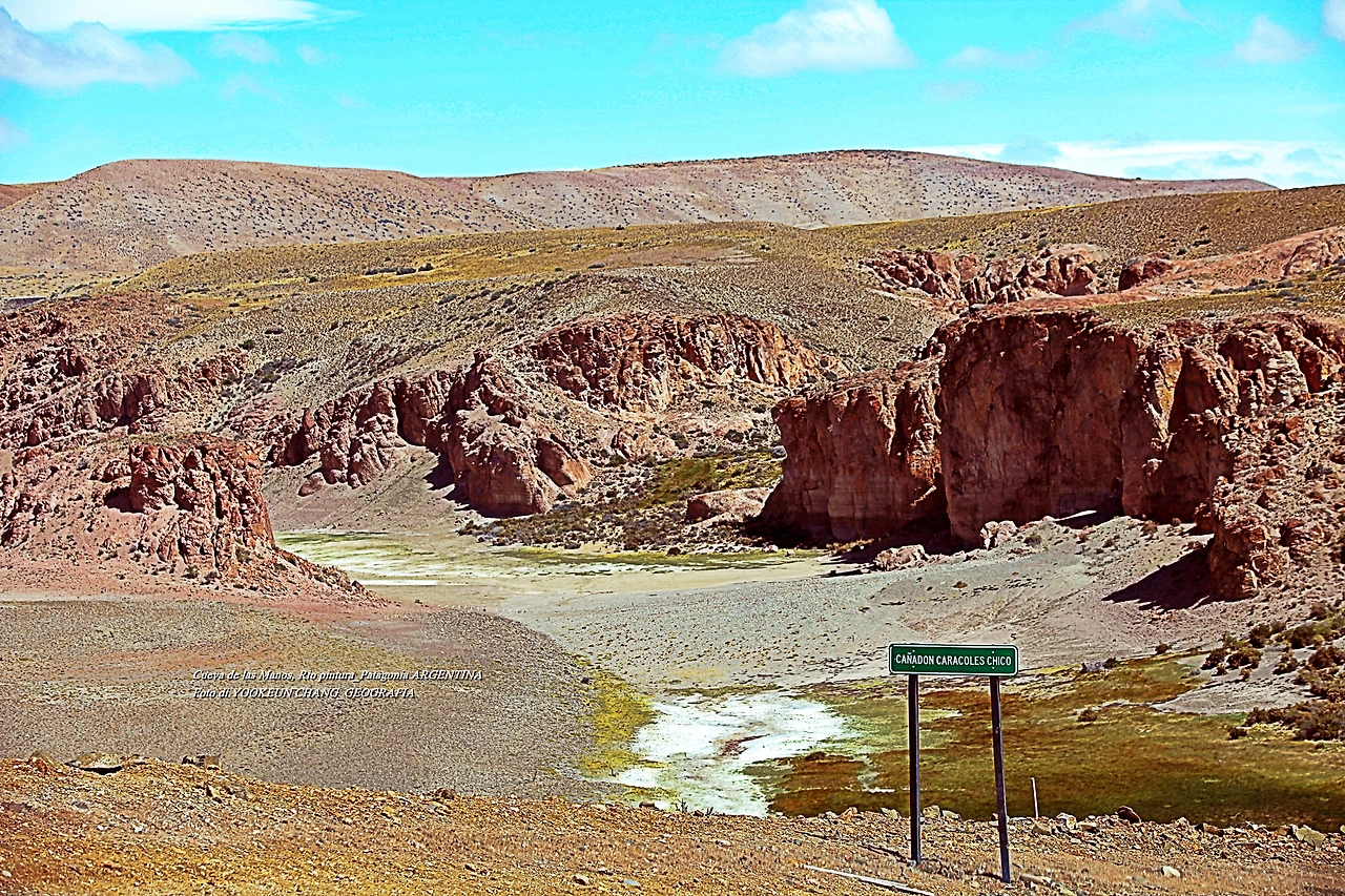 본문에 등재된 여행 자료사진은 뻬리또 모레노에서 꾸에바 데 라스 마노스로 향하는 자동차 속에서 만난 귀한 풍경들이다. 아르헨티나의 팜파스 지형에 등장한 알록달록한 풍경들.. 고불고불한 비포장 도로가 인상적이다.