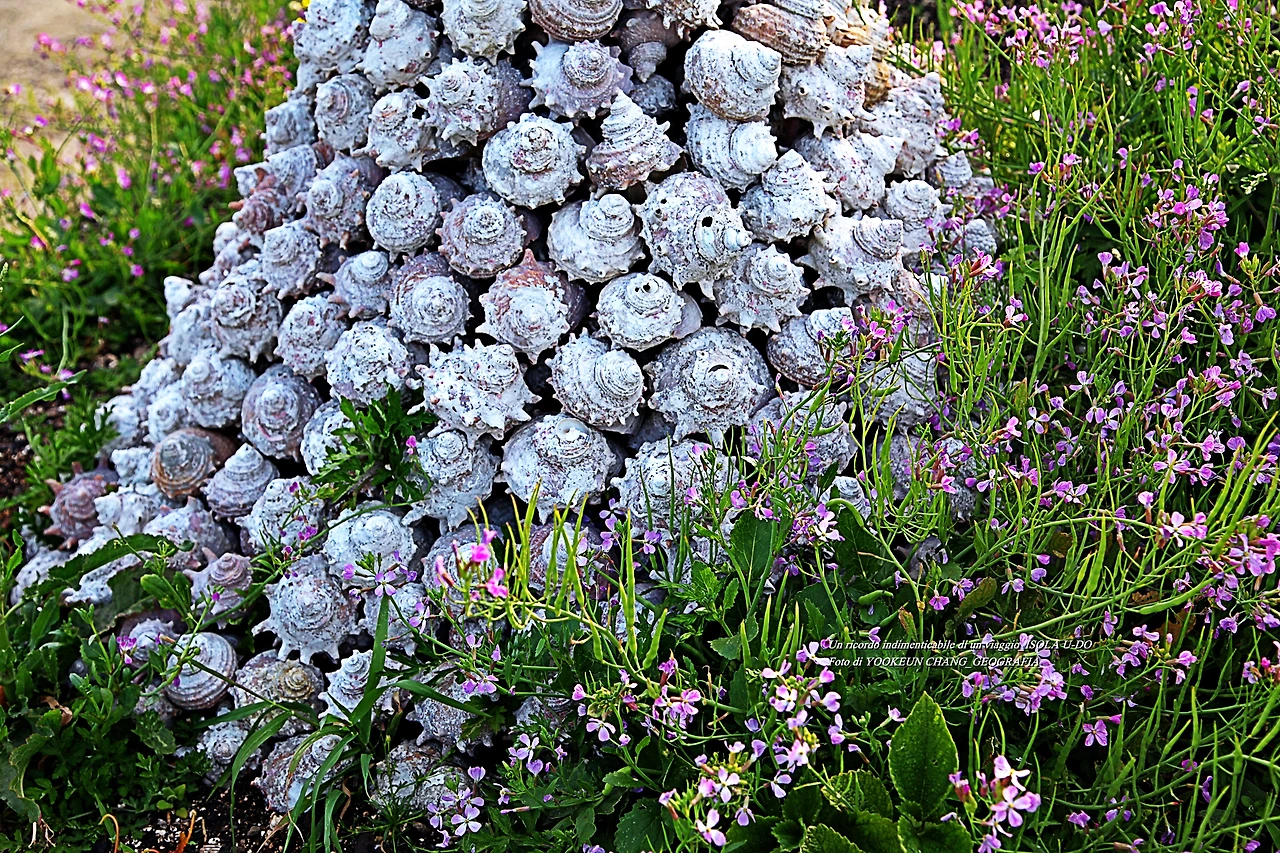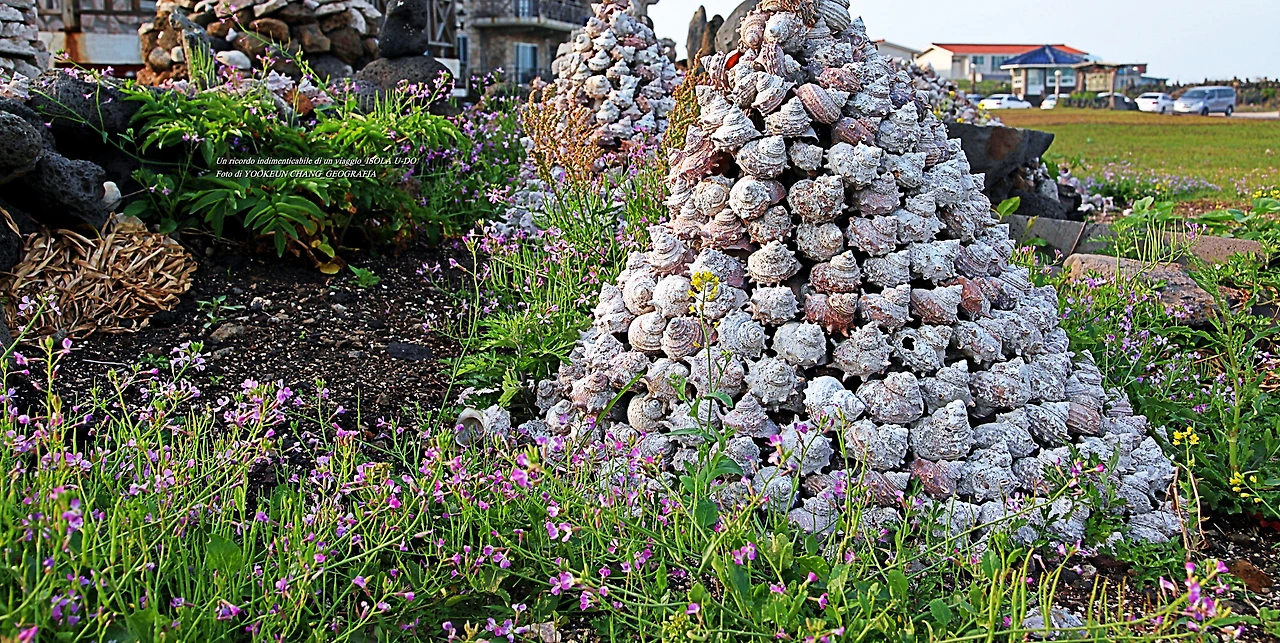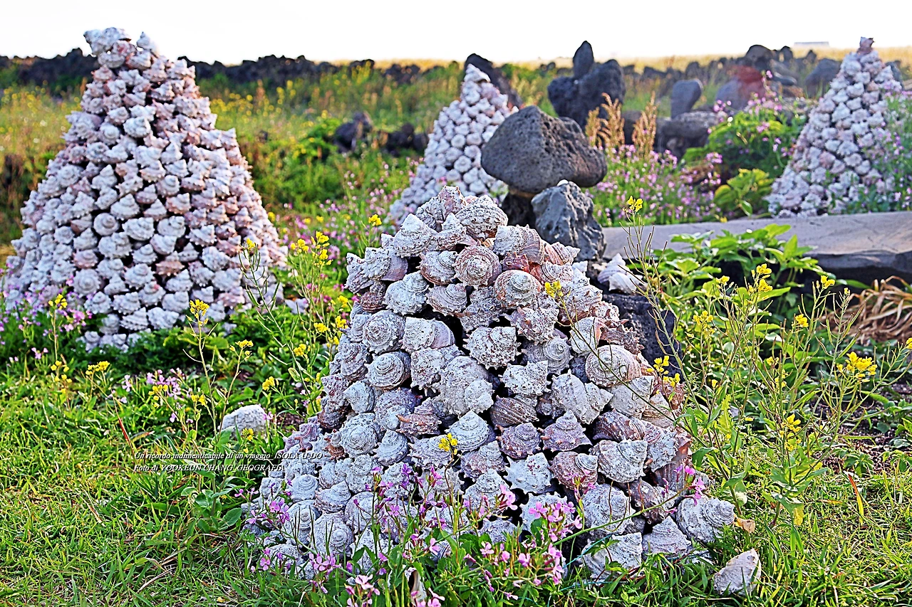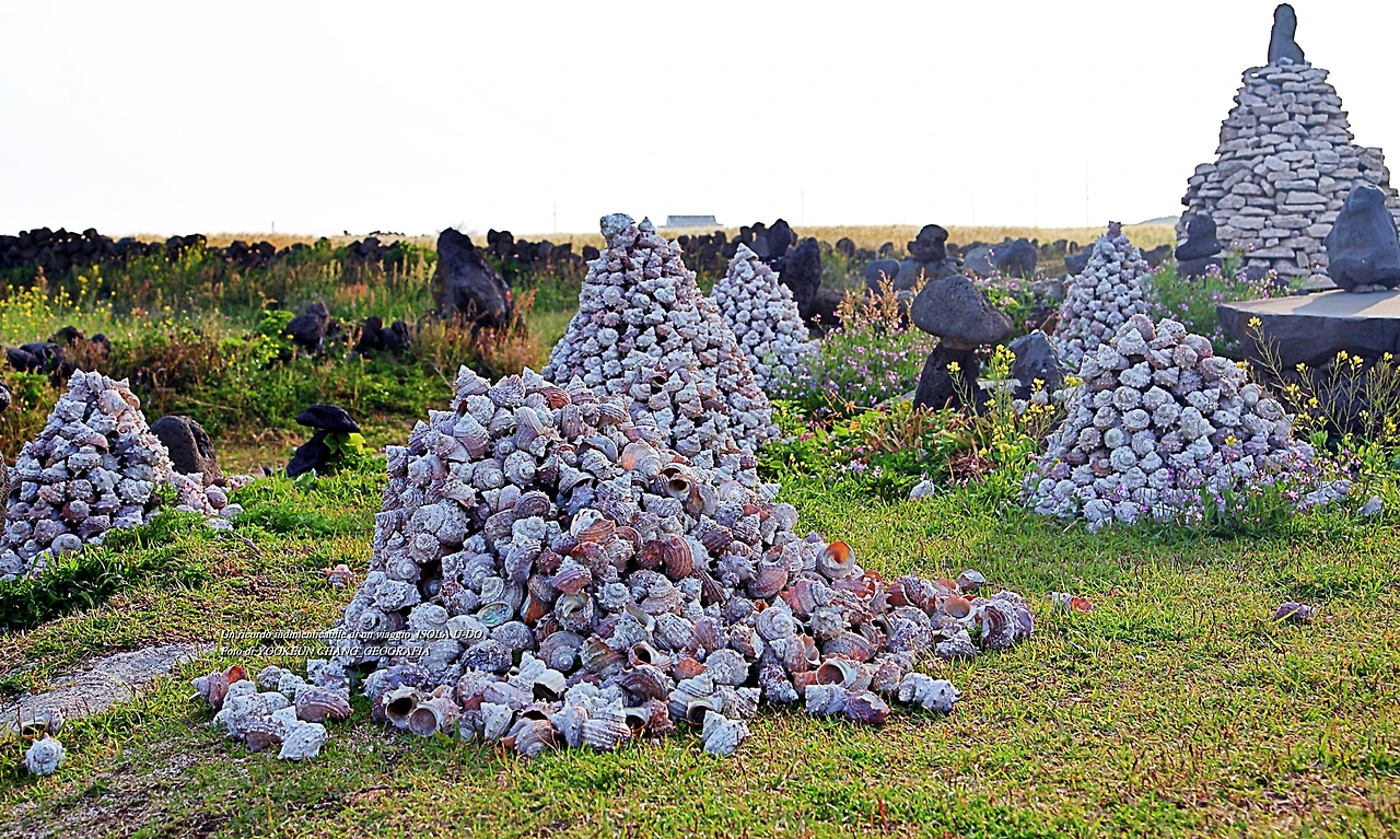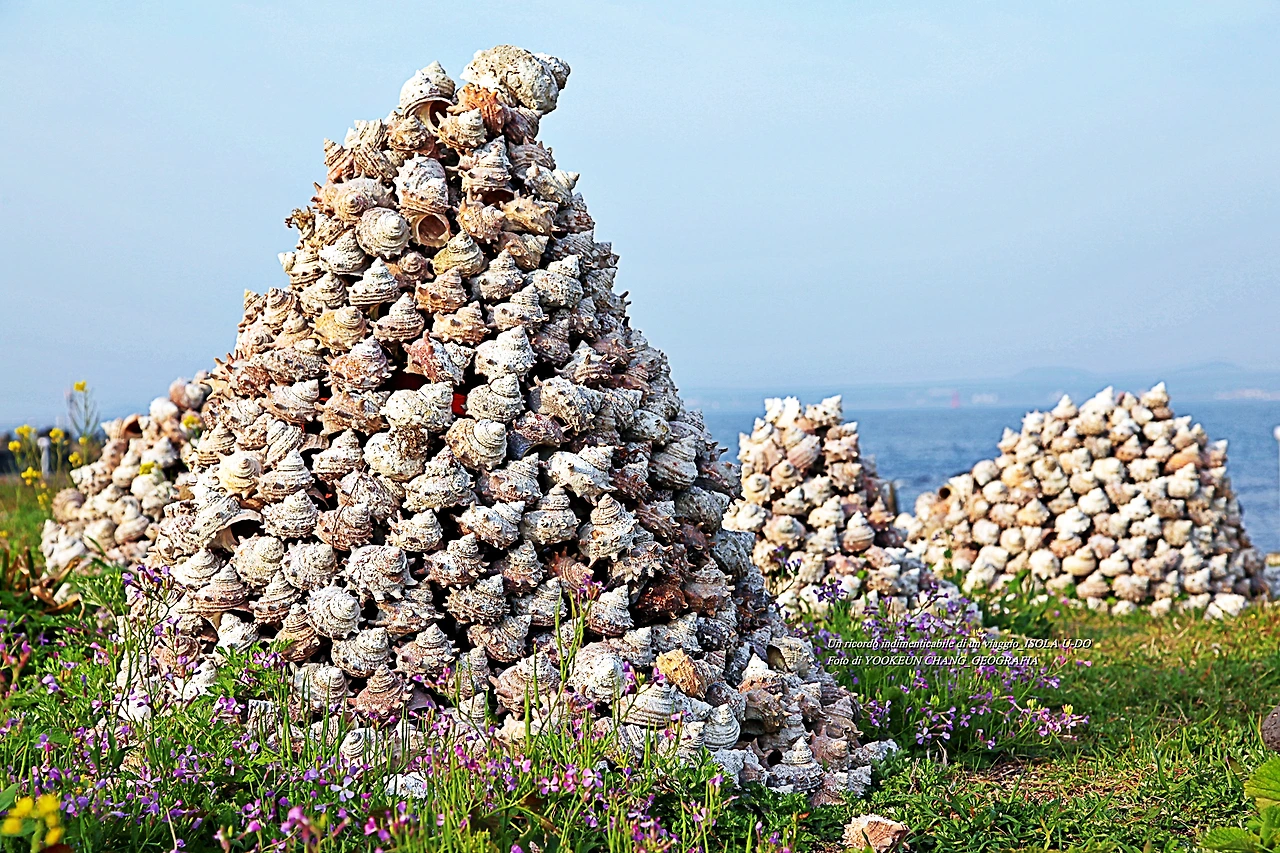 우도를 방문한 사람들이 소라의 속살을 쏙 다 빼먹고 남긴 흔적들이 피라미드를 만들었다.