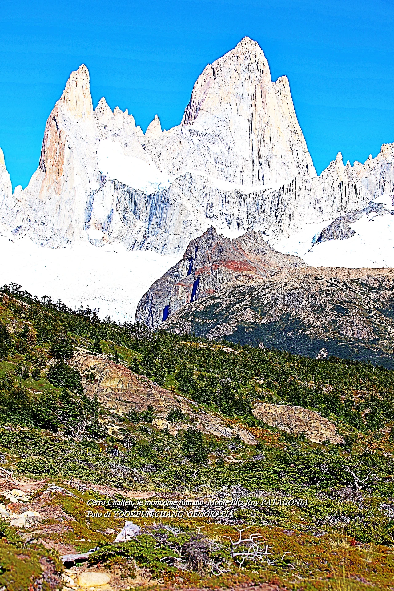 il parco nazionale Los Glaciares, nella provincia di Santa Cruz, e dalla parte cilena, forma parte del parco nazionale Bernardo O'Higgins. Raggiunge un'altezza di 3.405 metri sul livello del mare. 자료출처: https://it.wikipedia.org/wiki/Monte_Fitz_Roy