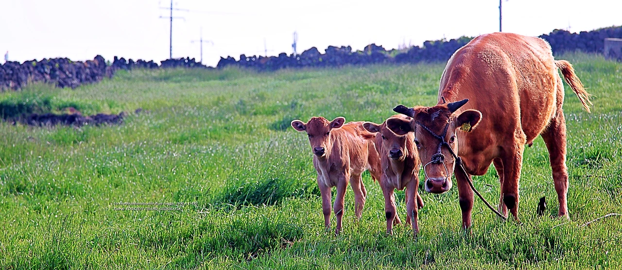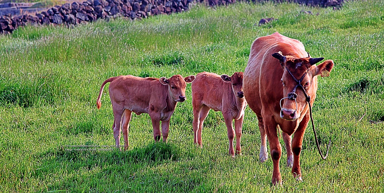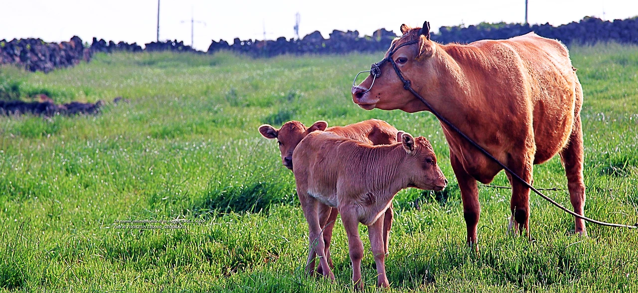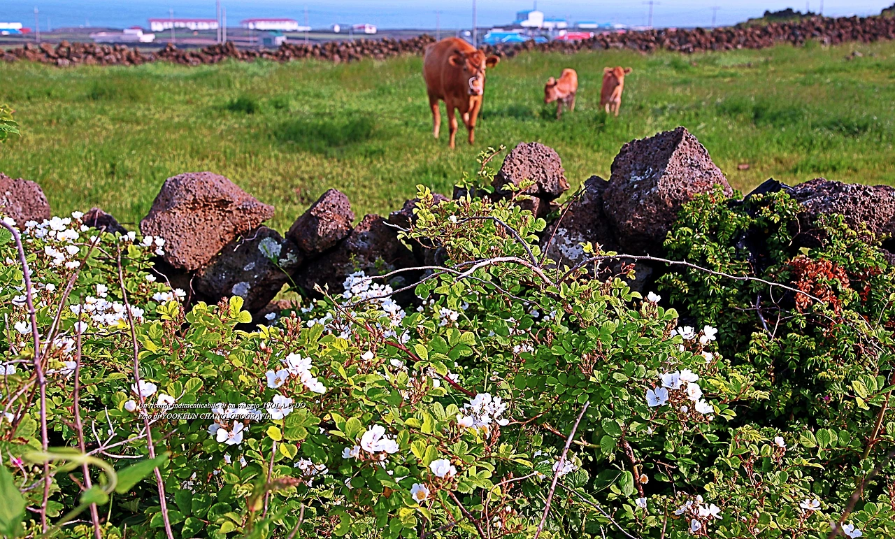 어느 날 우도 여행 중에 만난 어미 소 한 마리와 송아지 두 마리가 찔레꽃 덤불너머에서 풀을 뜯고 있었다. 어미 소는 낯선 이방인의 출현에 풀을 뜯다 말고 경계모드로 돌입했다. 곁에 있던 송아지 두 마리의 표정도 어미를 닮았다.