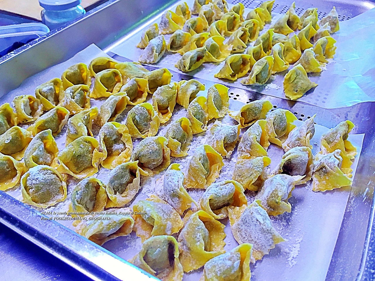 뷰파인더 앞에는 마치 공장의 기계에서 찍어낸 듯한 라비올리가 가지런히 다음 공정을 기다리고 있다. 말 그대로 셰프가 만들어낸 아름다운 작품이다. 어릴 때부터 이런 음식을 먹고 자라면 심성은 얼마나 곧을까.. 실제로 이날 초빙된 교수의 성격은 차분하고 말 수도 적으며 착해 보였다.
