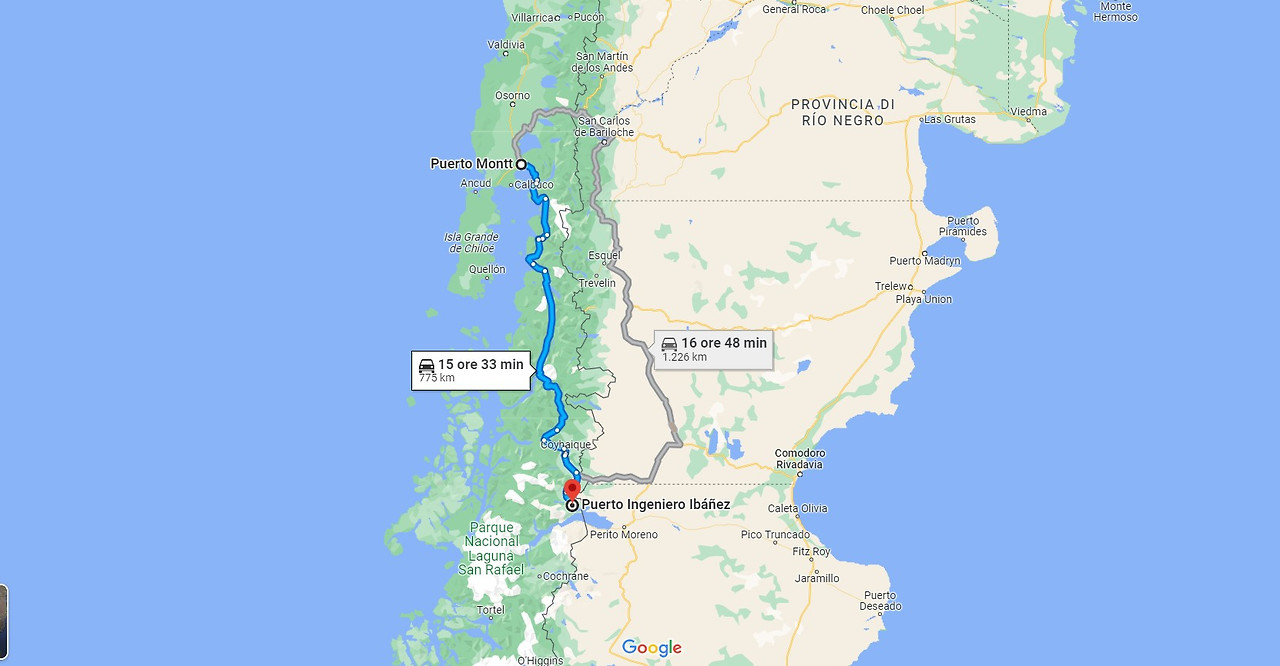 우리가 이동한 루트를 순서대로 편집했다. 뿌에르또 몬뜨에서부터 뿌에르또 인제니에로 이바네스까지.. 이곳에서 호수를 건너 칠레치코로 이동했다.