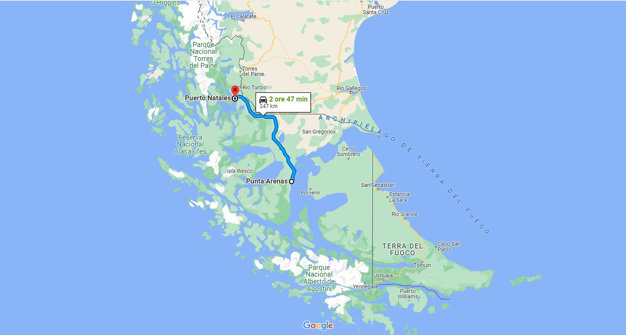 그다음 여정은 뿐따아레나스에서부터 뿌에르또 나탈레스까지이다. 마젤란 해협이 눈앞에 어른거린다.