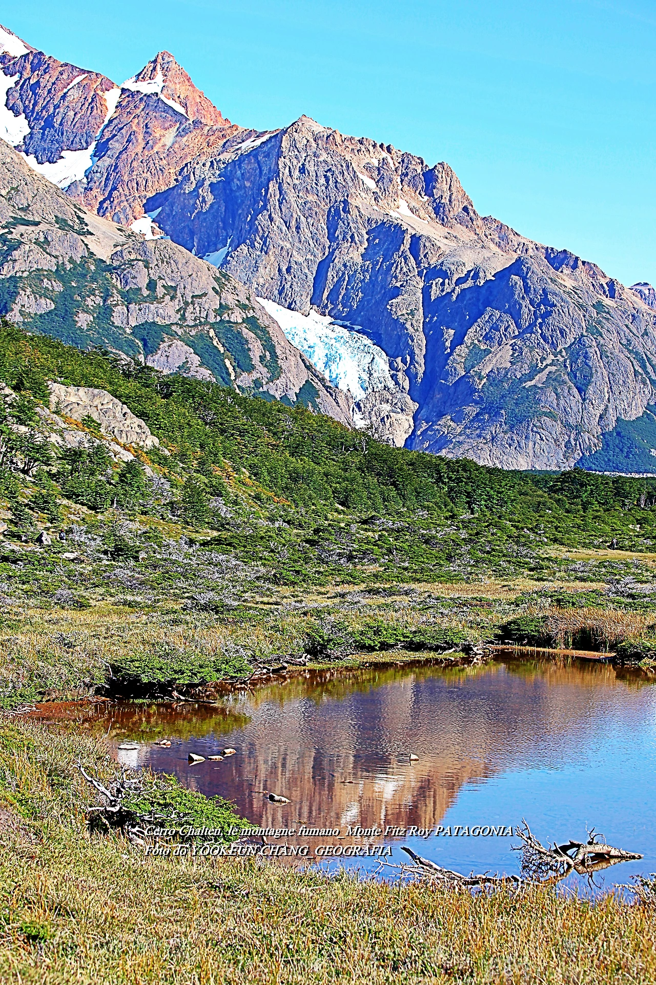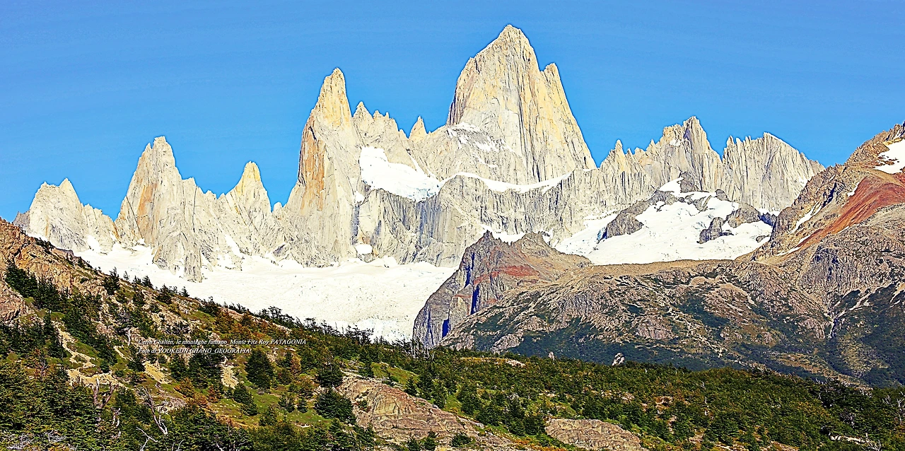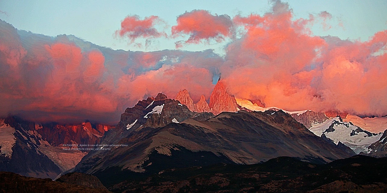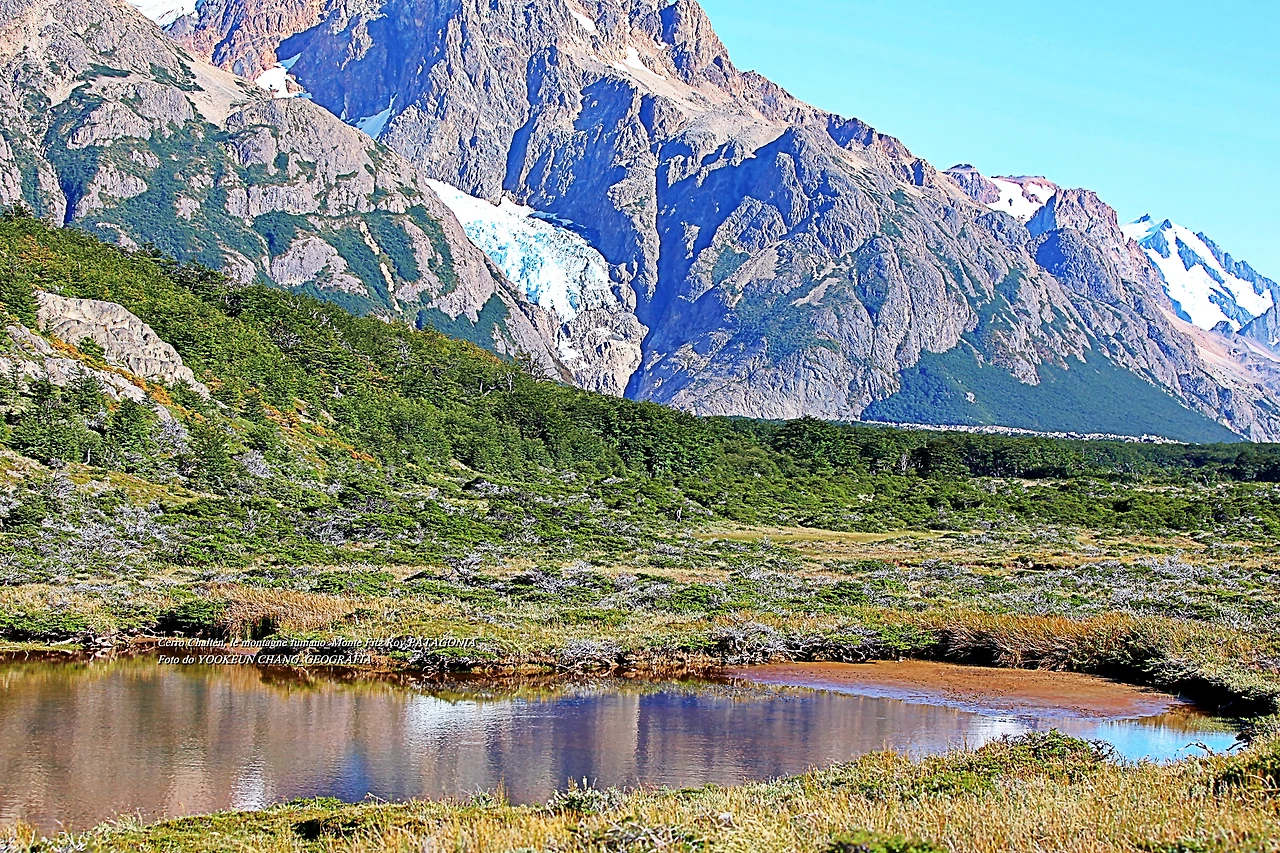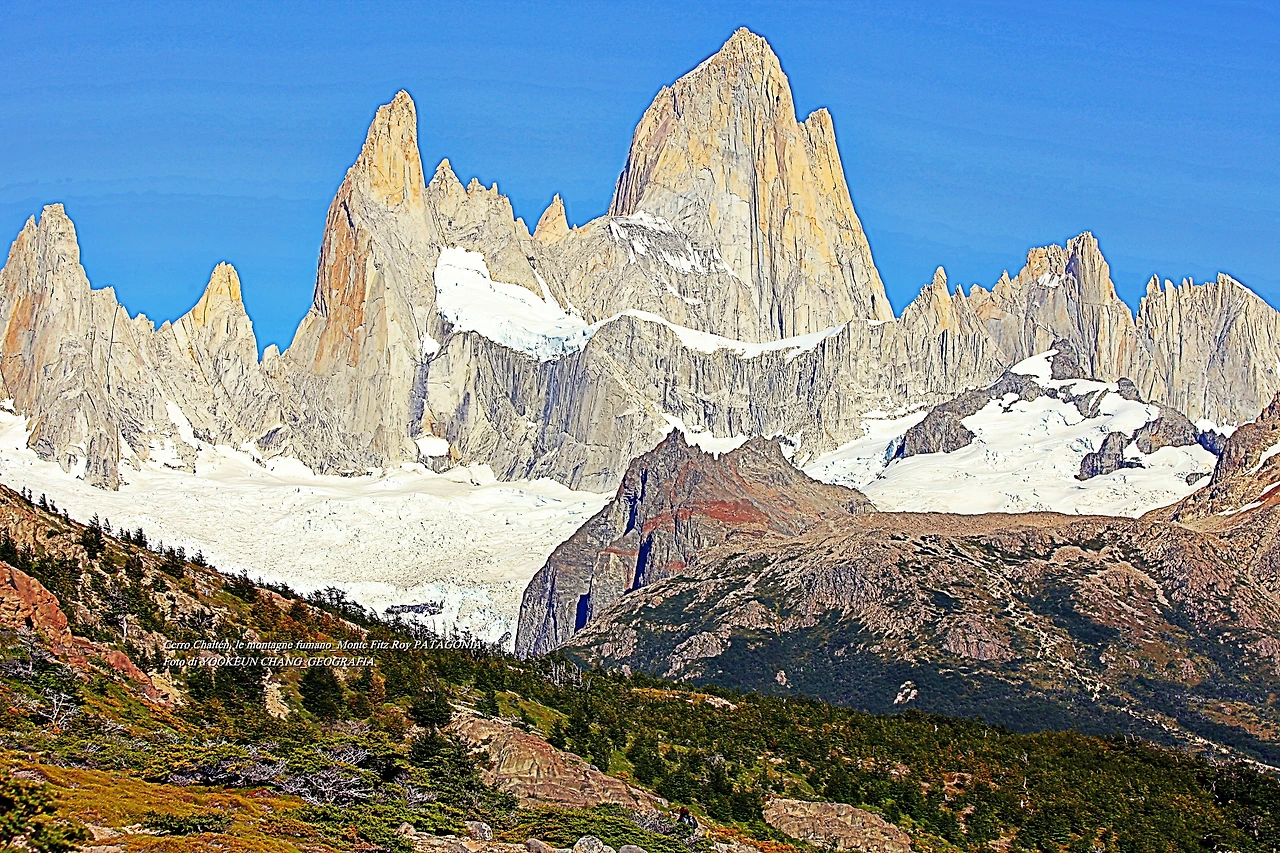 il parco nazionale Los Glaciares, nella provincia di Santa Cruz, e dalla parte cilena, forma parte del parco nazionale Bernardo O'Higgins. Raggiunge un'altezza di 3.405 metri sul livello del mare. 자료출처: https://it.wikipedia.org/wiki/Monte_Fitz_Roy