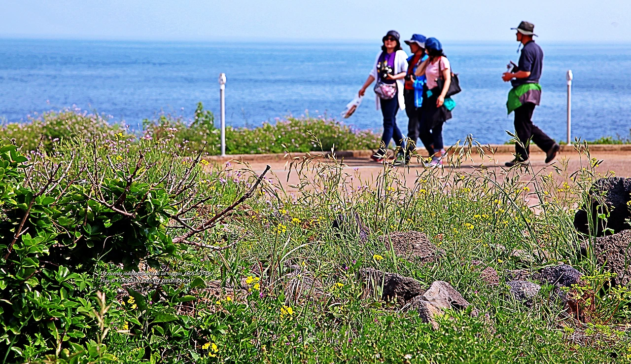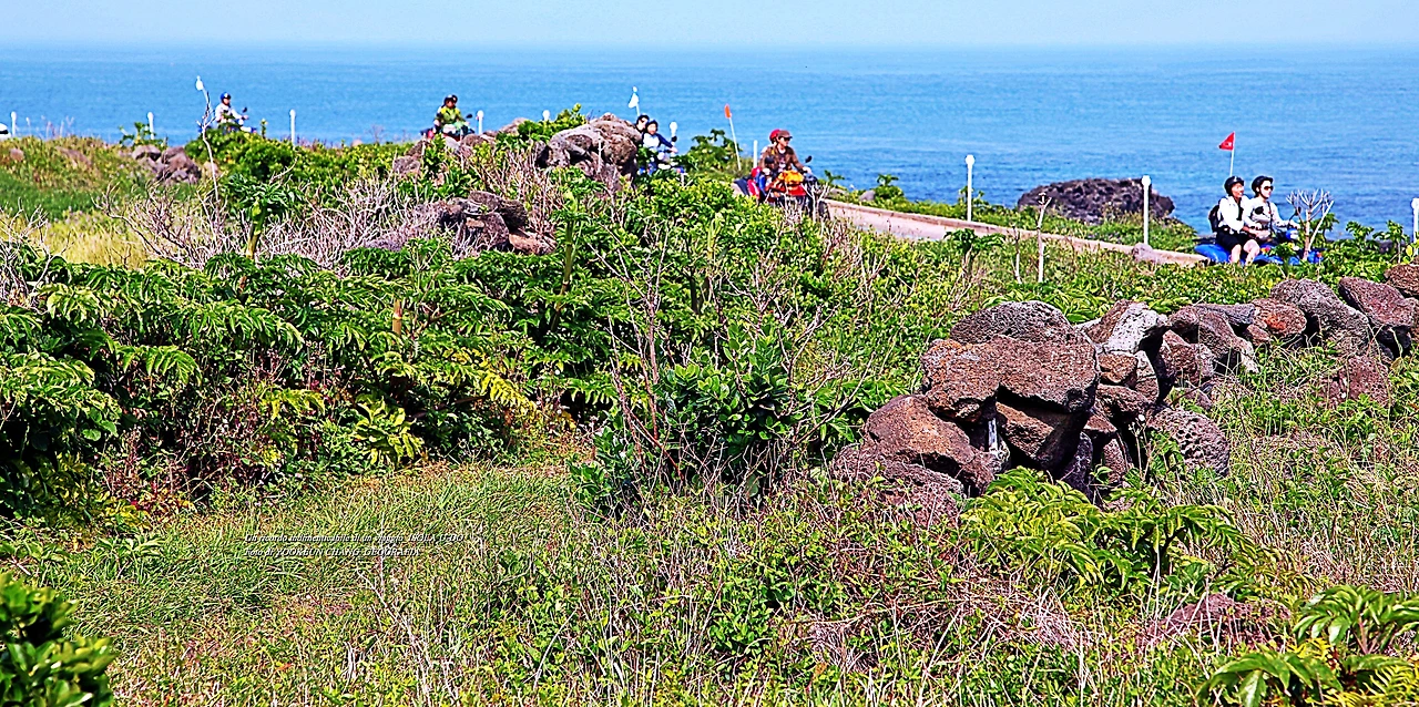 잠시 후 우도를 관광하고 있는 일행이 내 앞을 지나고 있는 풍경..