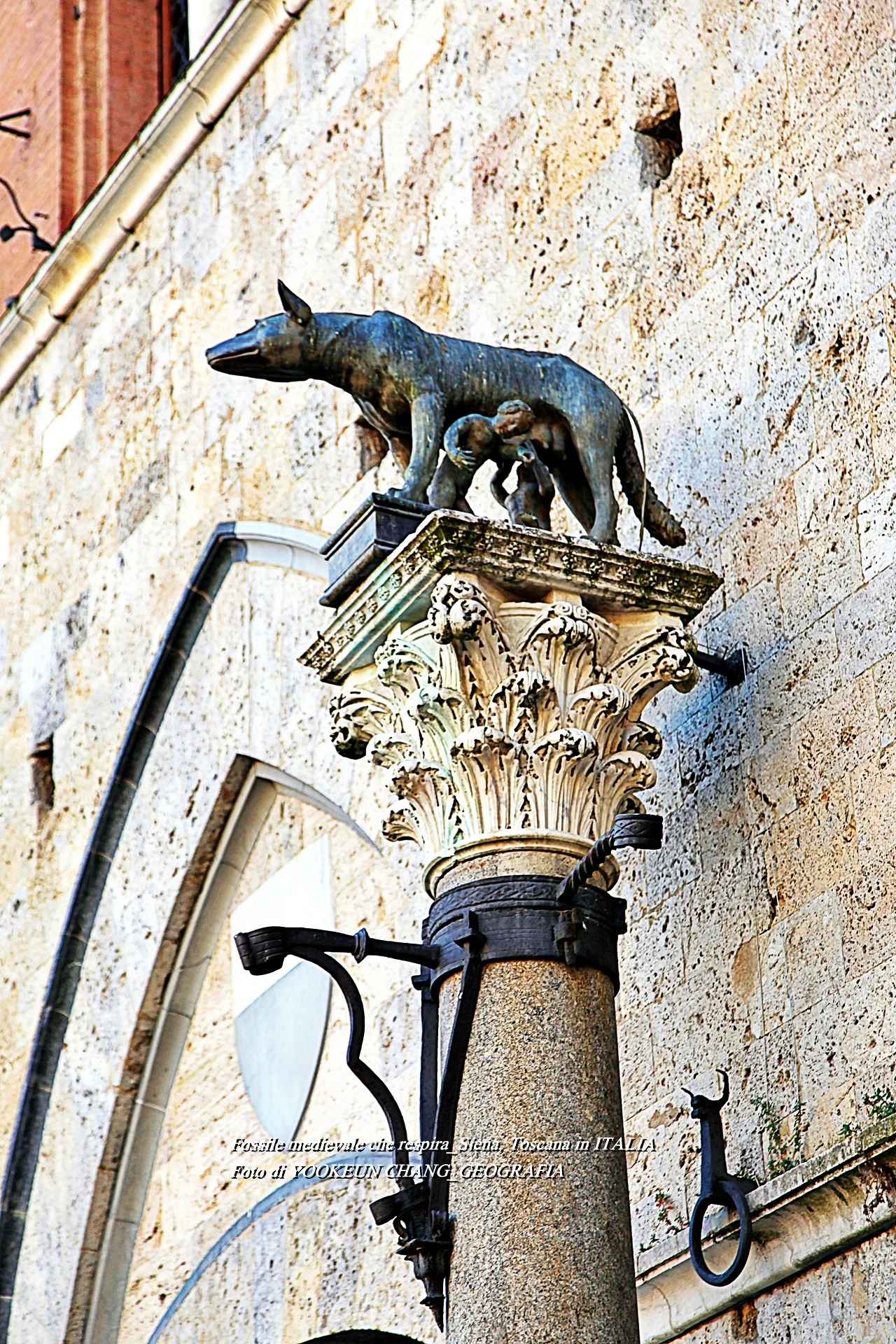 이런 전설이 믿기시나 모르겠다. 그렇지만 당시 로마인들은 여러 전설들 가운데 이 전설이 가장 마음에 들었다고 전하며 실제로 오늘날 로마의 중심은 빨라티노 언덕이 중심이 되고 있다. 바로 곁에 꼴로세오(Colosseo, 콜로세움)가 지어져 오늘날까지 로마를 기억하게 만들고 있는 것이다. 지난 여정 <시에나, 살아 숨 쉬는 중세의 화석> 편에서 이렇게 쌌다. 시에나 중심에 다다르면 곳곳에 전설의 상징 로물로스와 레무스 그리고 늑대가 눈에 띈다.