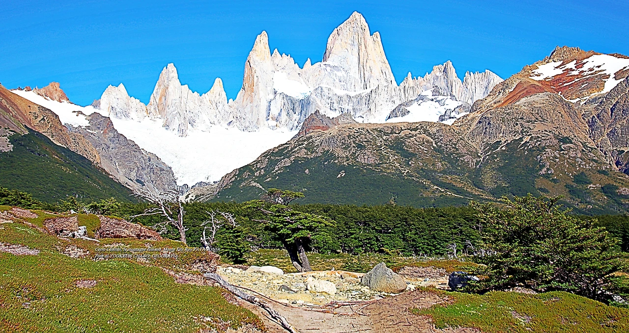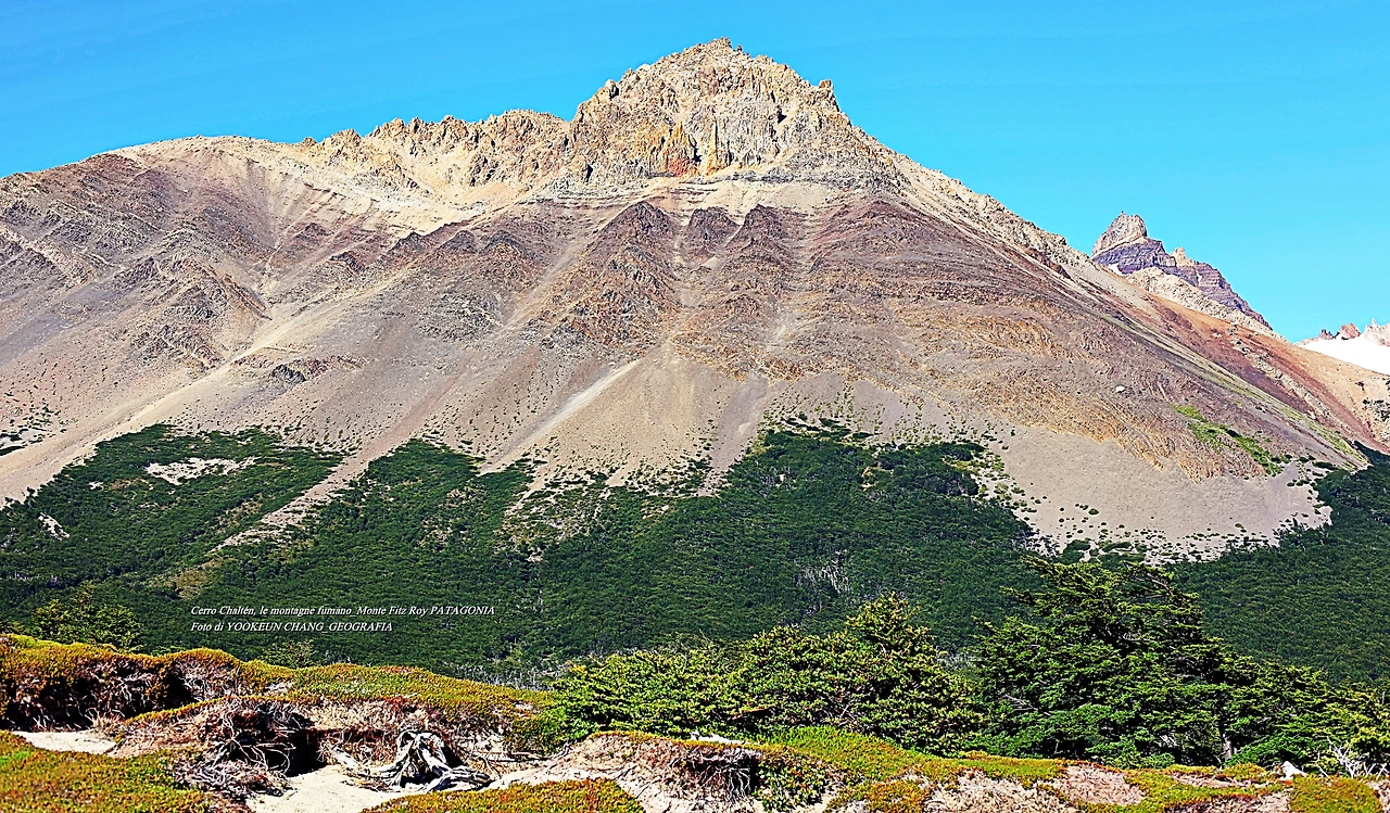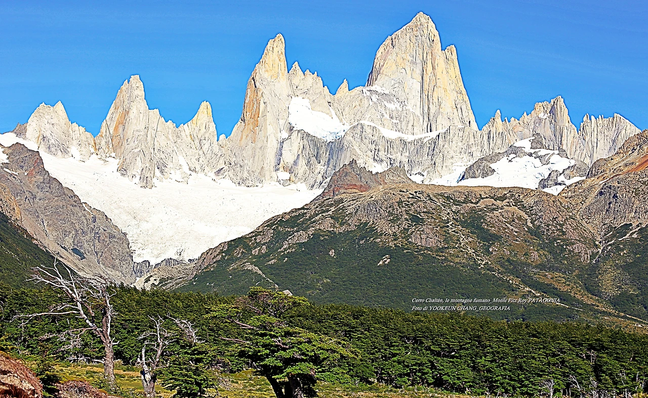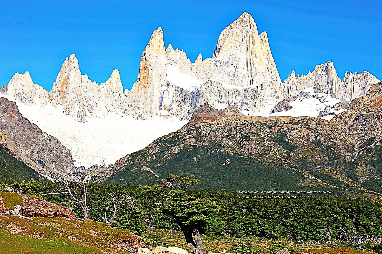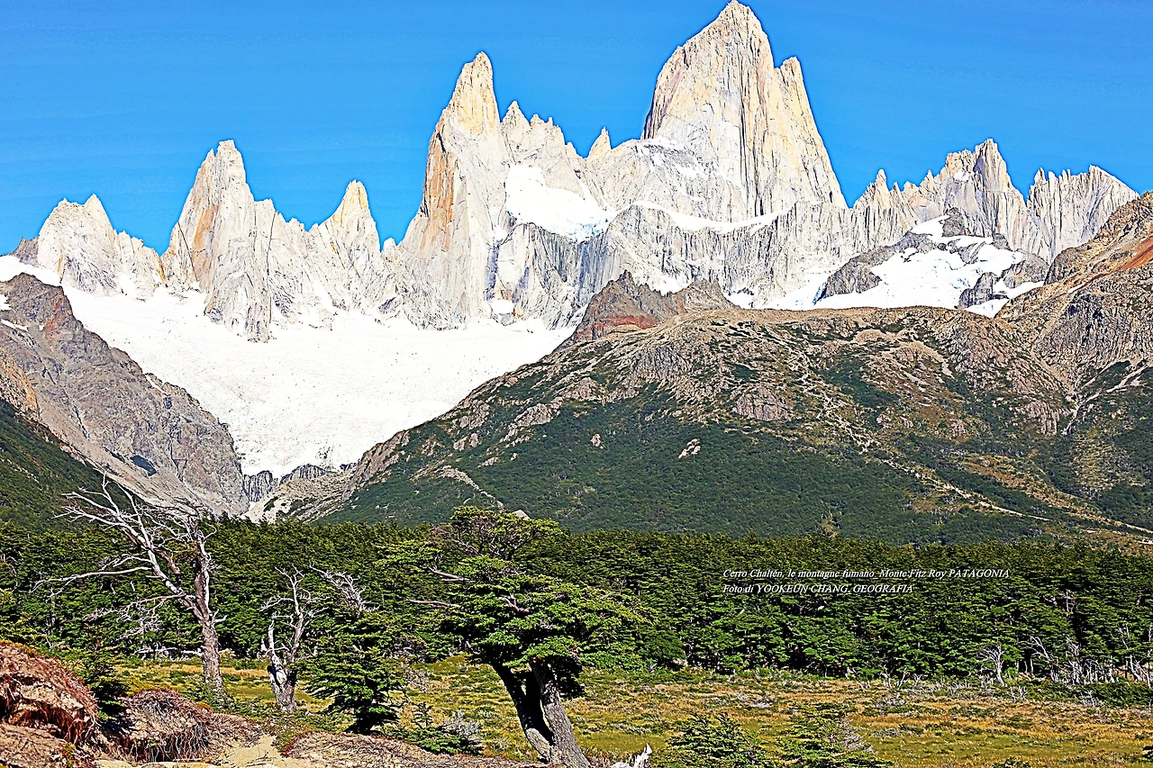 il parco nazionale Los Glaciares, nella provincia di Santa Cruz, e dalla parte cilena, forma parte del parco nazionale Bernardo O'Higgins. Raggiunge un'altezza di 3.405 metri sul livello del mare. 자료출처: https://it.wikipedia.org/wiki/Monte_Fitz_Roy