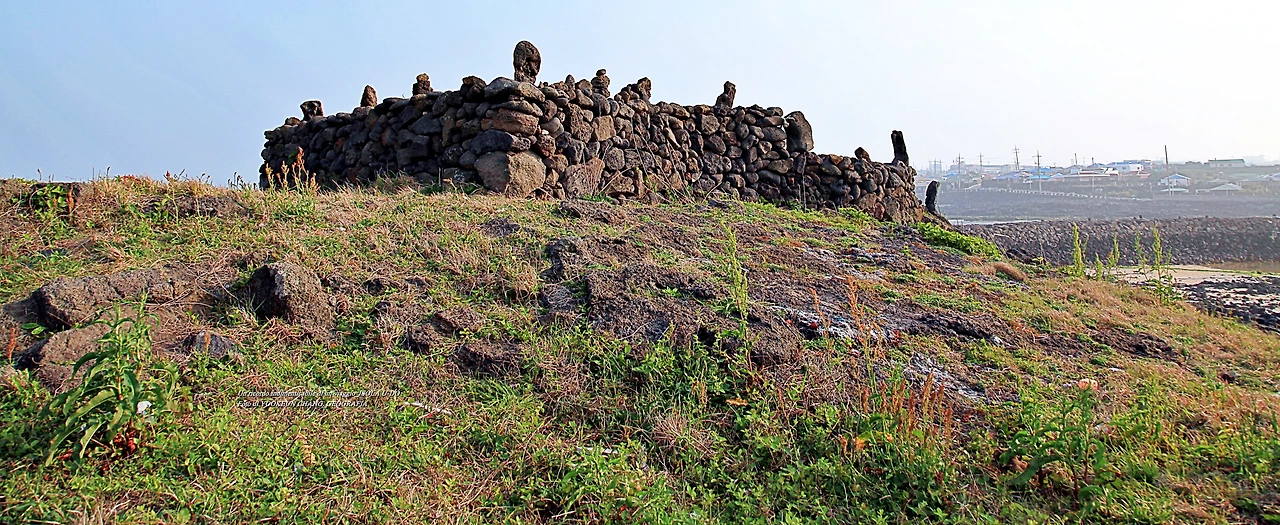야트막한 언덕 위에 자리 잡은 돈짓당은 이렇게 생겼다. 제주도에는 두 개의 비양도가 있다. 한림 협재해수욕장 앞바다의 ‘서비양도’와 우도의 ‘동비양도’이다. 한라산을 가운데 두고 양 날개를 이뤄 날아오르는 모습이라 붙여진 이름이다. 원래 우도의 비양도는 ‘볕 양(陽)’자을, 한림 비양도는 ‘떠오를 양(揚)’을 쓴다.