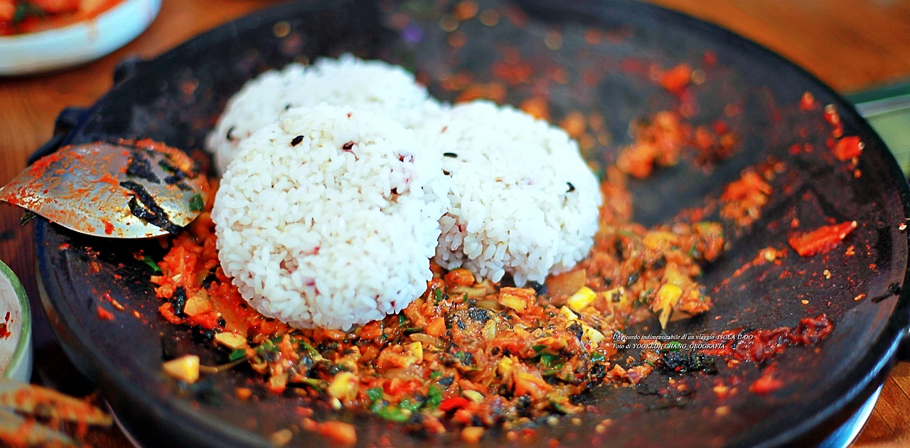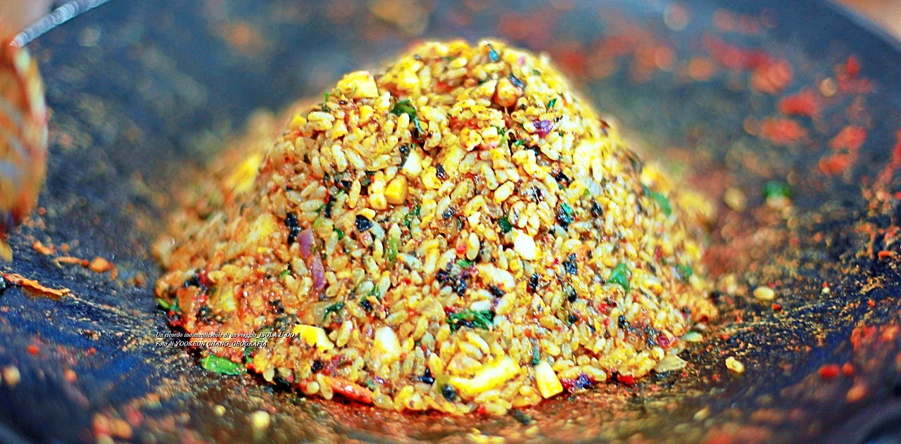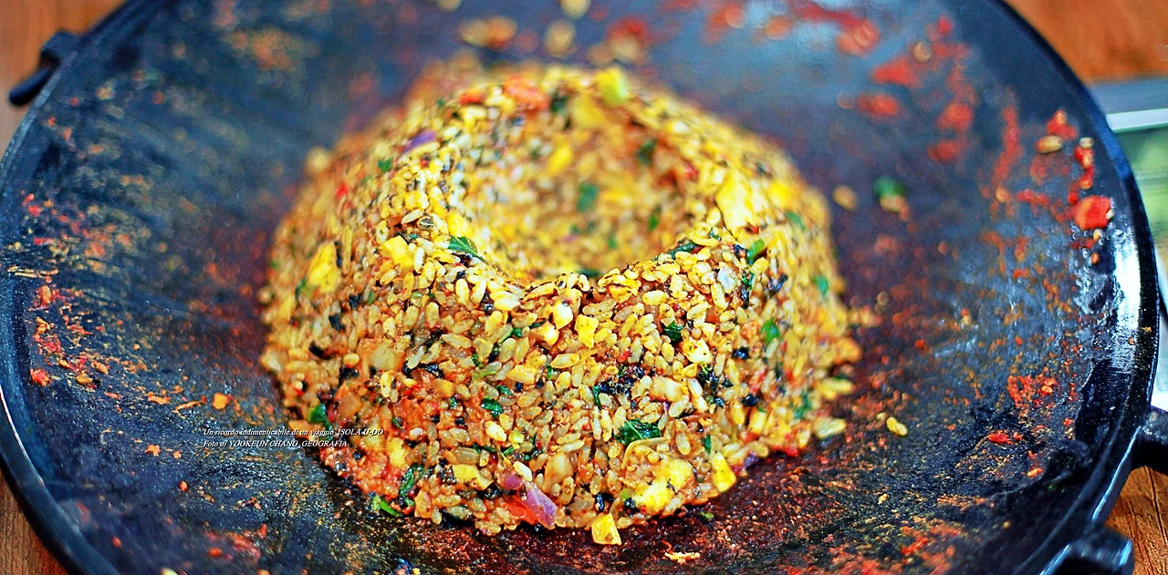 한치 볶음밥으로 표현한 제주도의 한라산 백록담..