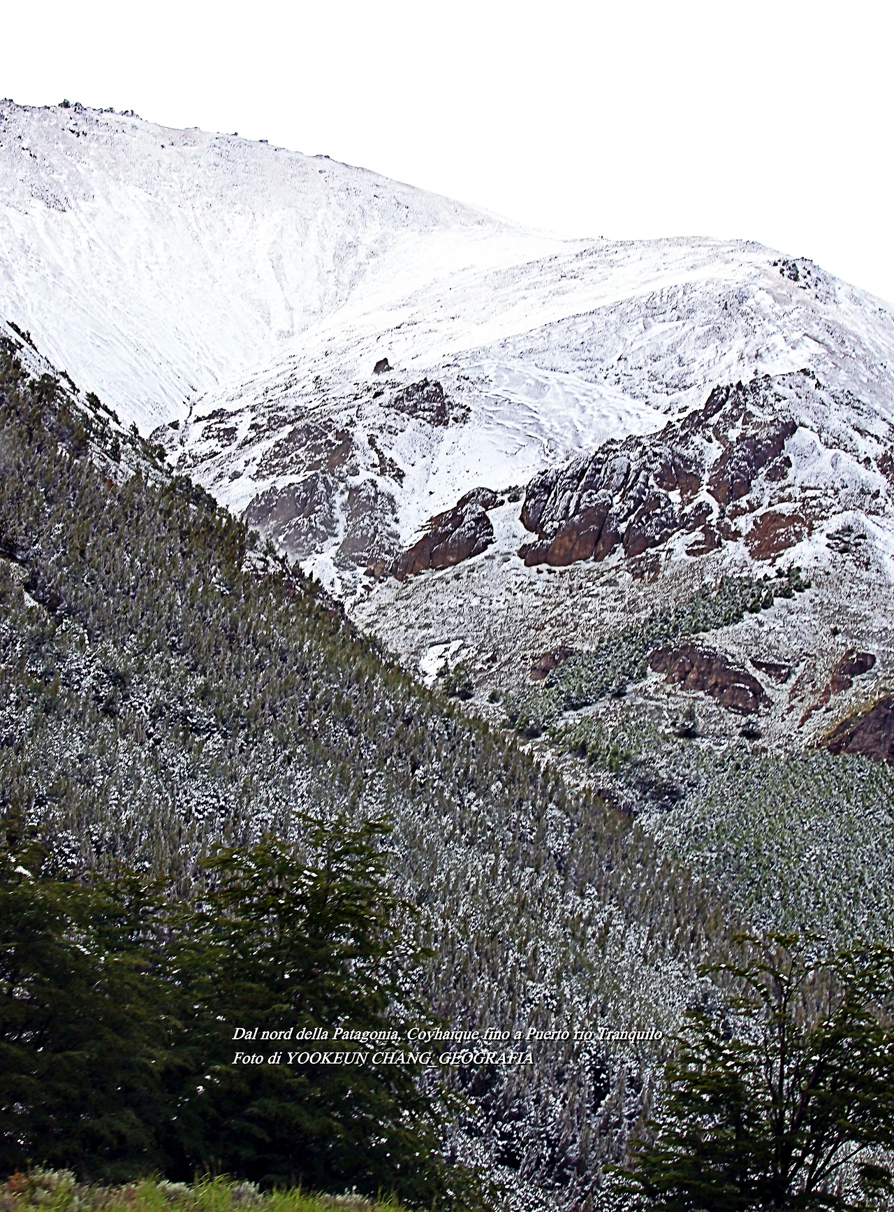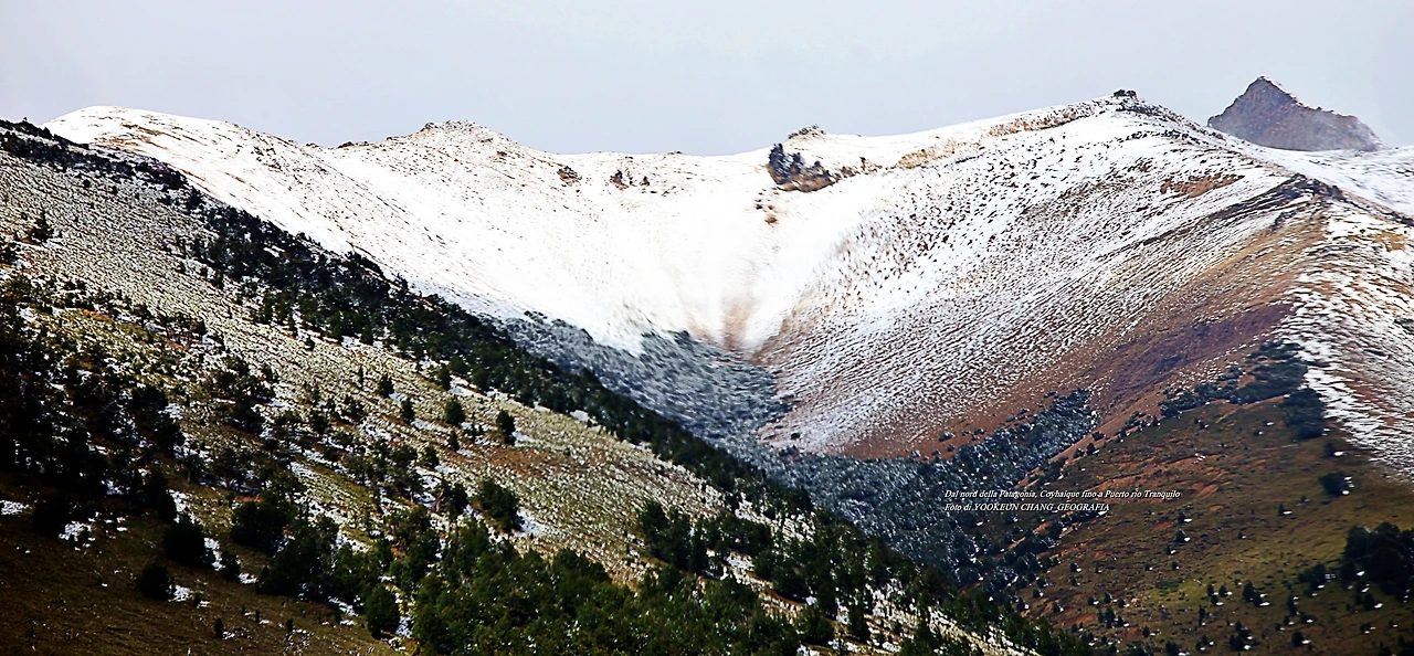 우기가 끝날 무렵.. 평소에는 햇볕이 쨍쨍할 것 같은 날씨가 이날은 눈과 비가 마구 뒤섞여 기막힌 분위기를 연출하고 있었다. 이런 걸 행운이라 부른다. 우리는 파타고니아 여행이 끝날 때까지 해운을 모시고 다녔다.