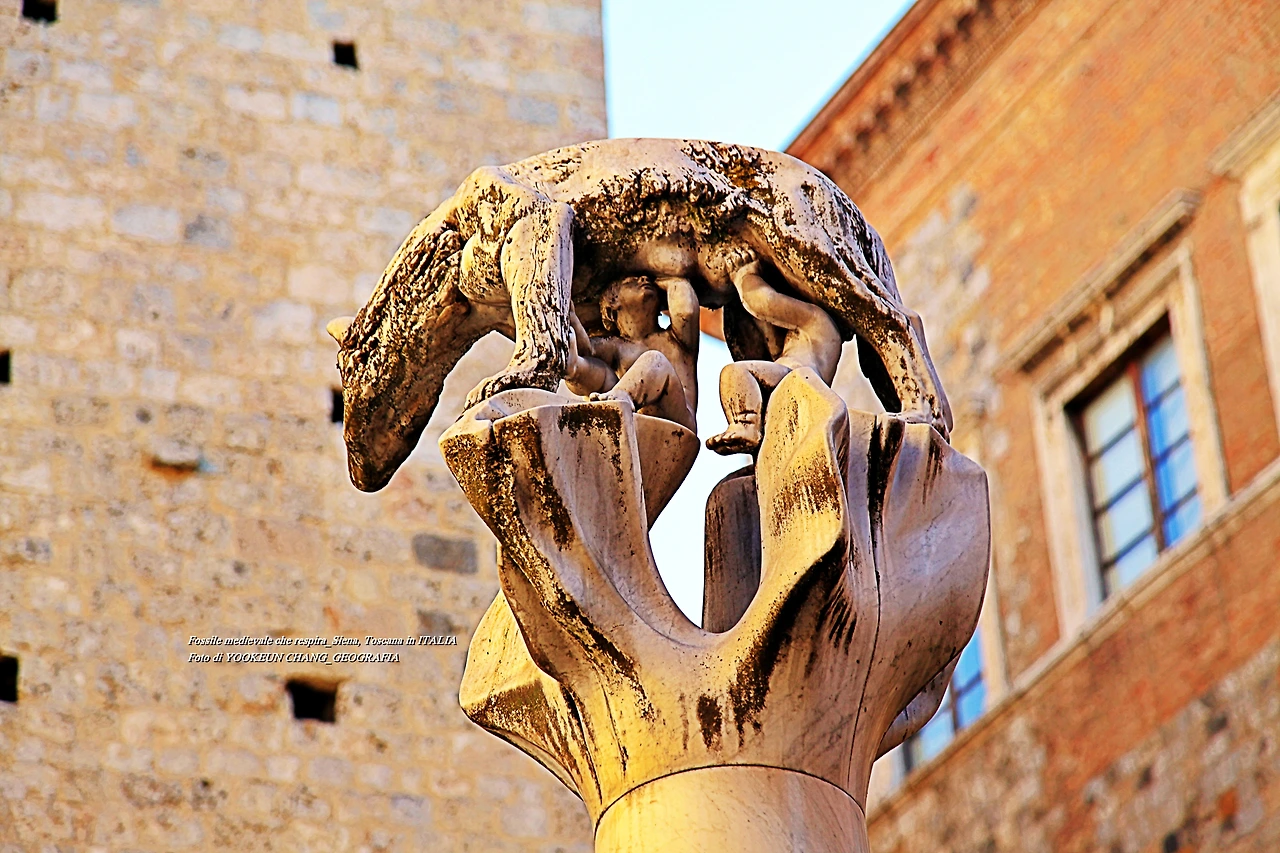 이런 전설이 믿기시나 모르겠다. 그렇지만 당시 로마인들은 여러 전설들 가운데 이 전설이 가장 마음에 들었다고 전하며 실제로 오늘날 로마의 중심은 빨라티노 언덕이 중심이 되고 있다. 바로 곁에 꼴로세오(Colosseo, 콜로세움)가 지어져 오늘날까지 로마를 기억하게 만들고 있는 것이다. 지난 여정 <시에나, 살아 숨 쉬는 중세의 화석> 편에서 이렇게 쌌다. 시에나 중심에 다다르면 곳곳에 전설의 상징 로물로스와 레무스 그리고 늑대가 눈에 띈다.