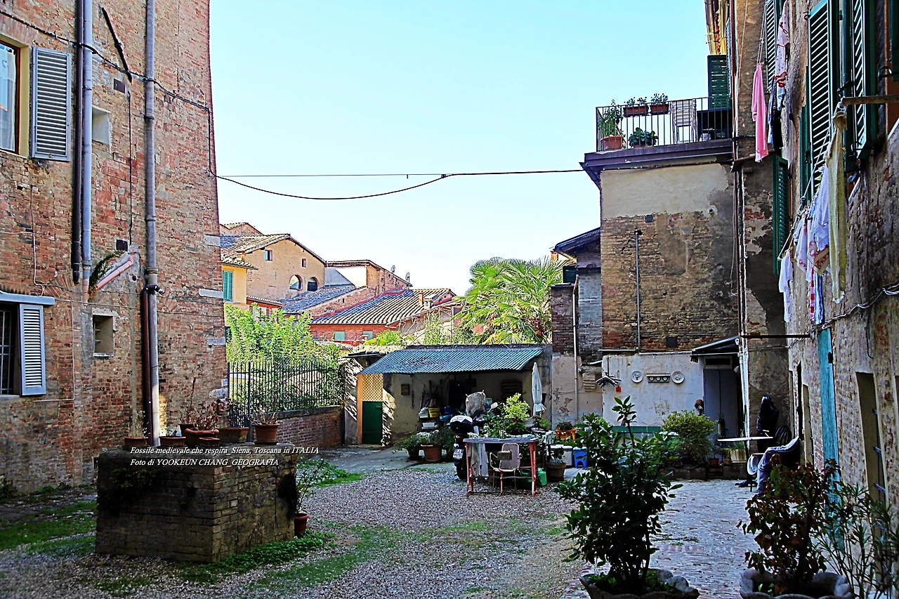 링크해 둔 사이트 원문을 참조하여 시에나 여행을 통해서 만난 나의 느낌을 첨부하면 이러하다. 시에나는 피렌체와 달리 산꼭대기(높은 언덕)에 만들어진 도시이다. 맨 처음 시애나는 방문하시는 분들도 쉽게 이해하기 힘들 것이다. 보통의 도시들은 강이나 하천을 끼고 만들어지고 있는 반면에 이 도시는 강으로 이어지는 길이 꽤나 멀리 떨어져 있다.