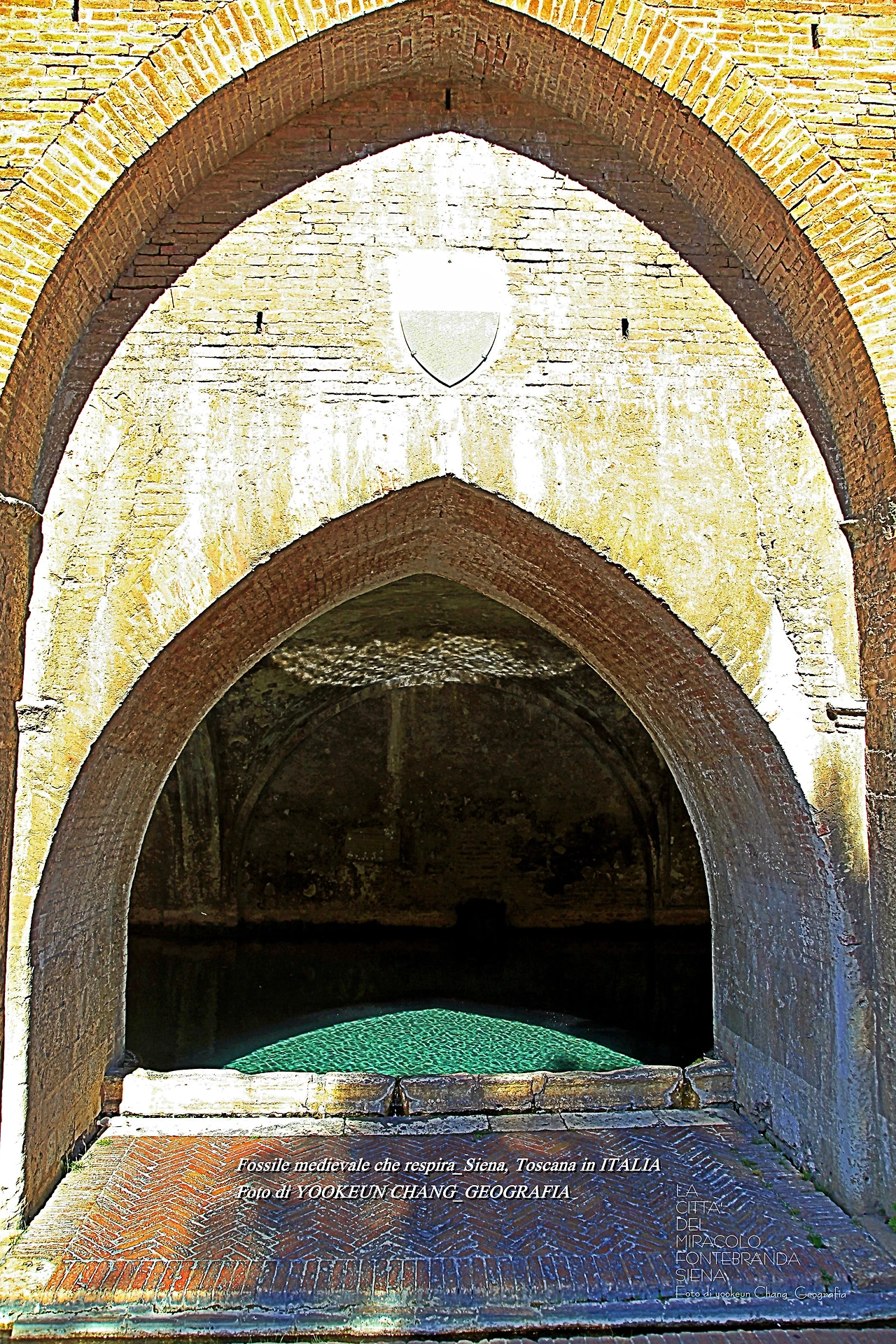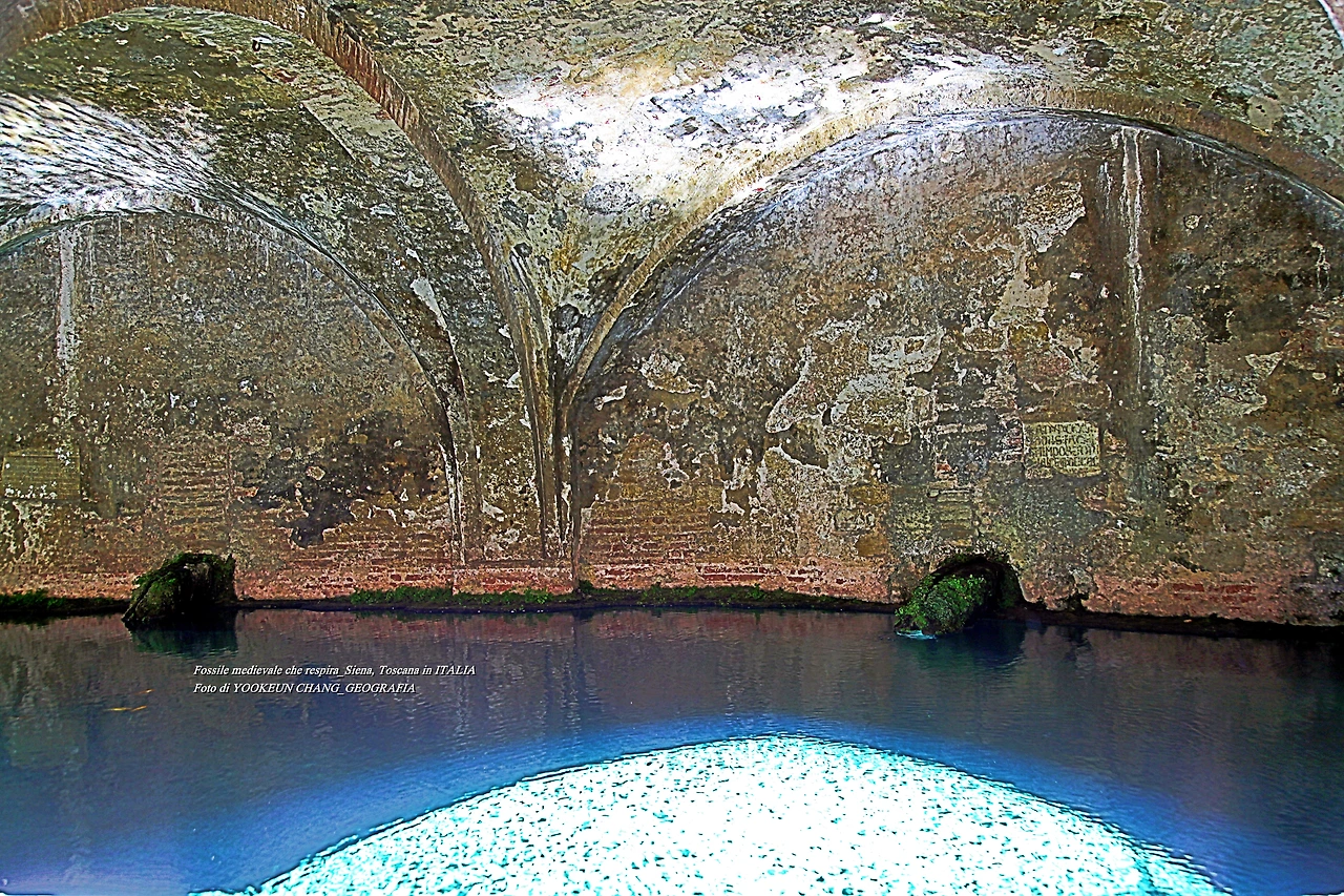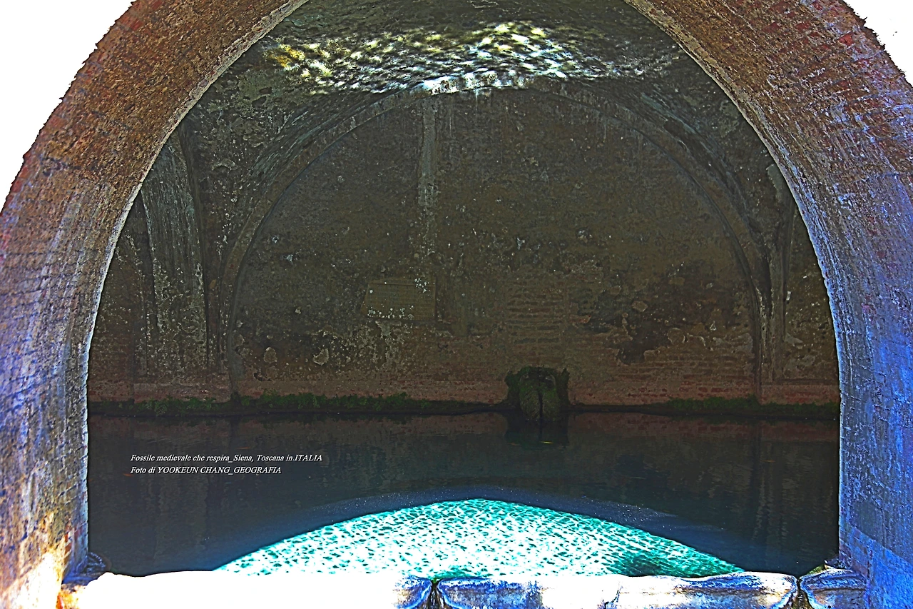 그런데 우리가 도시락을 먹으려고 한 장소를 발견한 직후 시에나가 기적의 도시란 걸 단박에 알아차렸다. 그곳은 관련 포스트에서 만난 오래된 성당 아래 위치한 샘터였으며 광천수가 끊임없이 솟아오르는 곳이었다. 중세 시대의 많은 샘들이 도시의 외곽에 만들어진 것과 달리 이 샘은 도시의 중앙에 위치해 있으며, 기록에 따르면 20개 정도의 샘물이 시에나 사람들의 식수원이 되고 있었던 것이다.