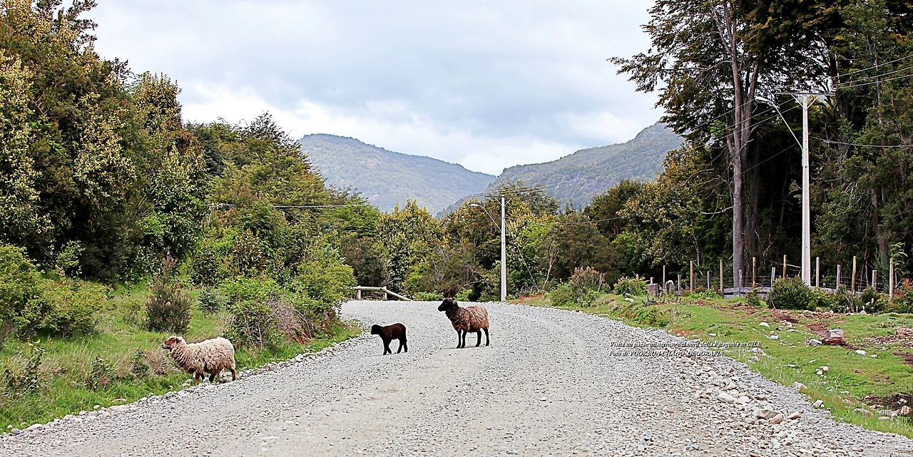 그때 비포장도로를 가로지르는 양 몇 마리를 만나게 됐다.