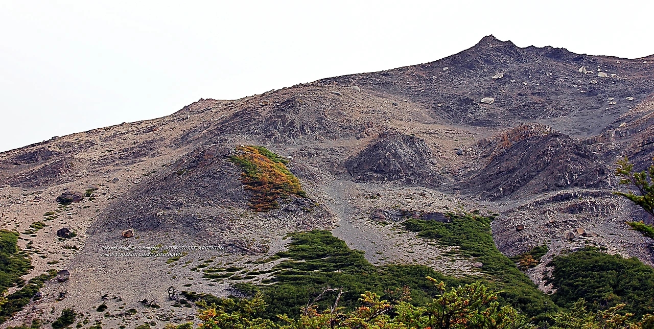 우리의 목적지인 라구나 또레(Laguna Torre)로 흘러드는 빙하가 연출한 비경이다. 희뿌연 운무가 가끔씩 진눈깨비를 날리며 여행자의 발길을 재촉한다. 먼동이 트기도 전부터 부지런히 걸었지만 아직 목적지에 발을 디디지 못했다. 느낌표 어래로 빙하가 보이고 거대한 언덕이 보인다. 목적지로 이동하는 동안 이 언덕이 어떻게 생성되었는지 알 수가 없었다. 그러나 목적지에 도착한 직후부터 이 언덕은 까마득히 오래전 빙하기 때 빙하가 밀어낸 흔적임을 알게 됐다.