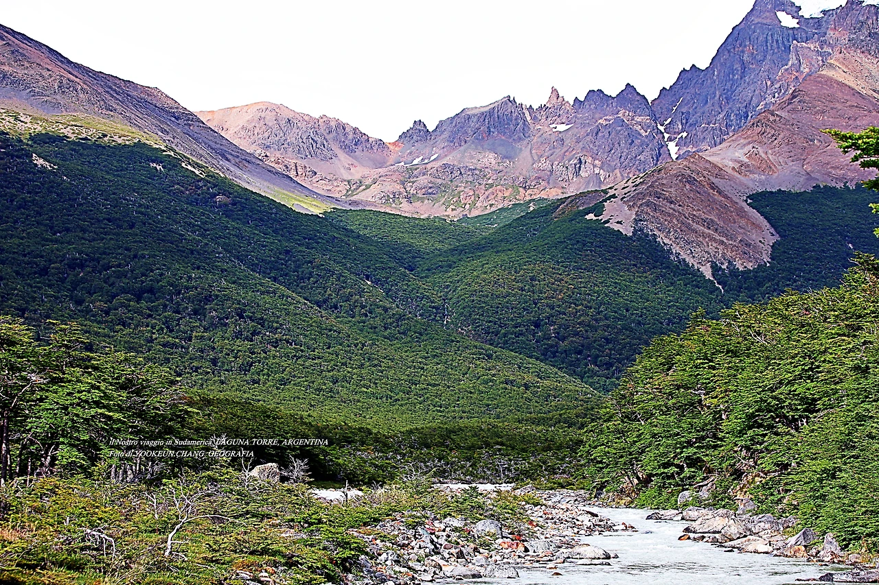 우리가 이동하고 있는 현재 위치에서 바라본 피츠로이 강은 한 때 빙하가 흘러내리던 곳이다.