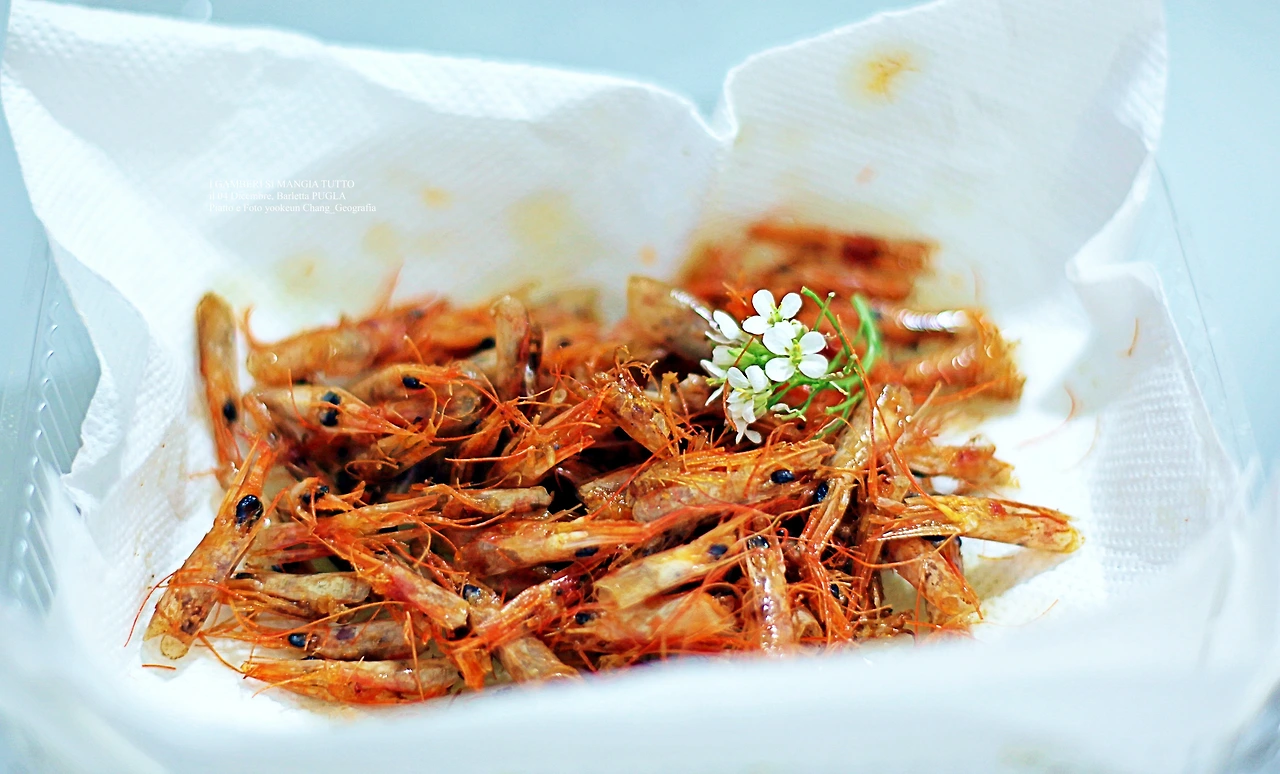 따라서 귀가 즉시 바를레타 재래시장에 들러 새우 1킬로그램(5유로)을 구입하게 됐다. 이날 구입한 새우는 손가락만 한 것으로 싱싱해 보였다. 또 싱싱한 오징어도 2킬로그램을 구입했다. 현장에서 생으로 맛을 보니 오징어회가 생각난 것. 집으로 돌아온 즉시 새우 요리에 들어갔다.