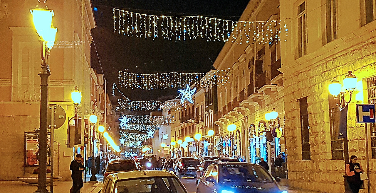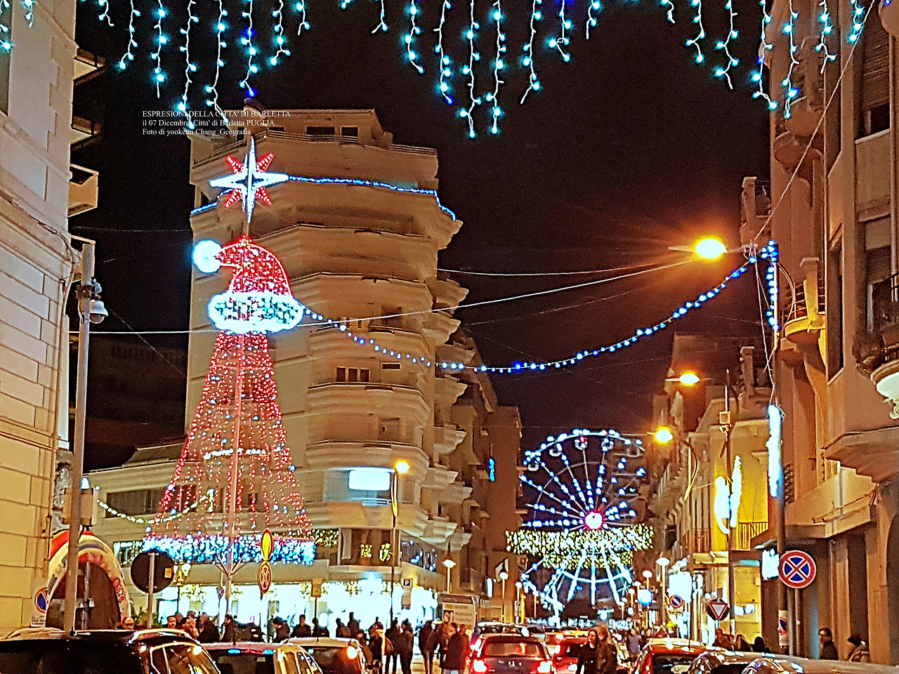 자료 사진과 영상은 내가 살고 있는 이탈리아 남부 뿔리아 주 바를레타의 12월 7일(현지시각) 주말 표정이다. 저녁나절, 사내를 한 바퀴 돌며 도시 표정을 카메라에 담았다. 영상을 거의 통편집하니 7분여의 시간이 소요됐다. 이같이 많은 분량은 나 스스로도 분위기에 빠져든 것으로, 시민들의 마음도 더했으면 더했지 덜하지는 않을 것 같다. 크리스마스를 앞두고 시민들이 대거 거리로 몰려나올 수밖에 없는 풍경이 도시 전체를 휘감고 있었기 때문이다.