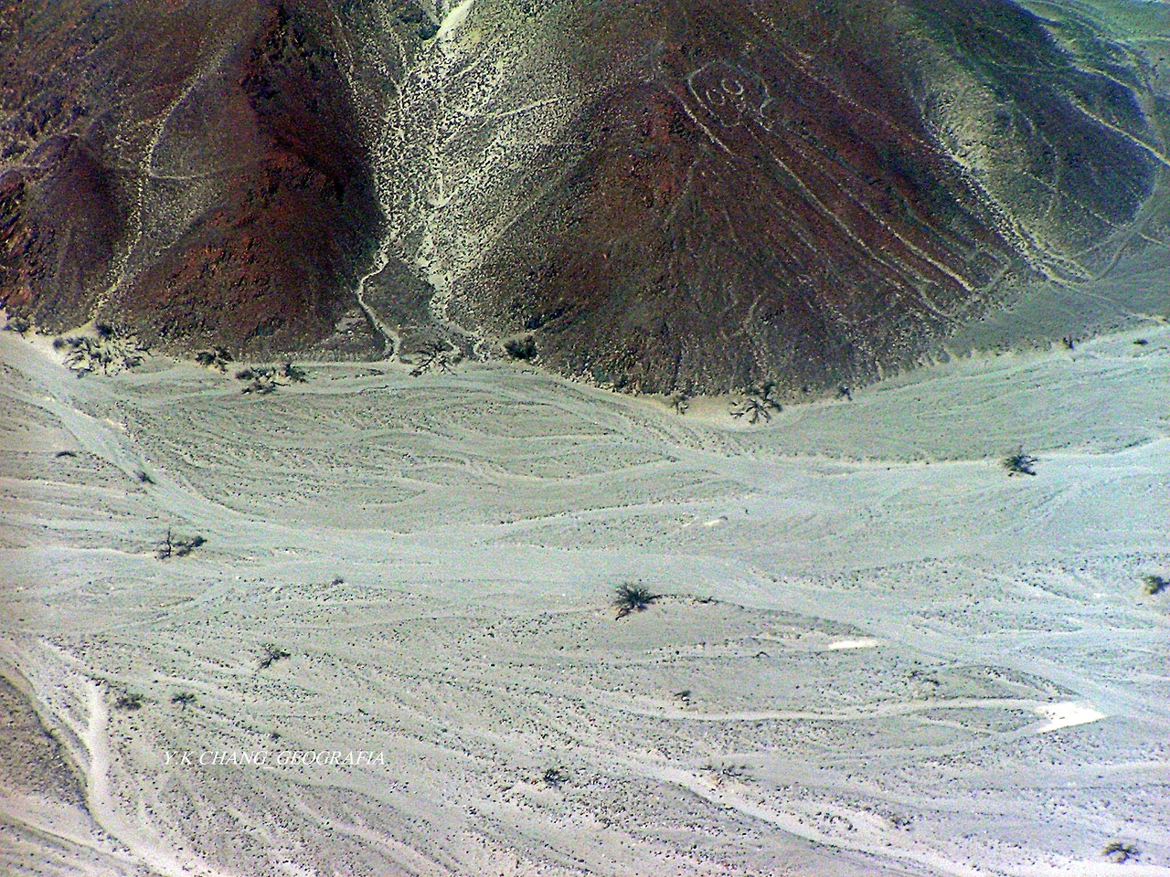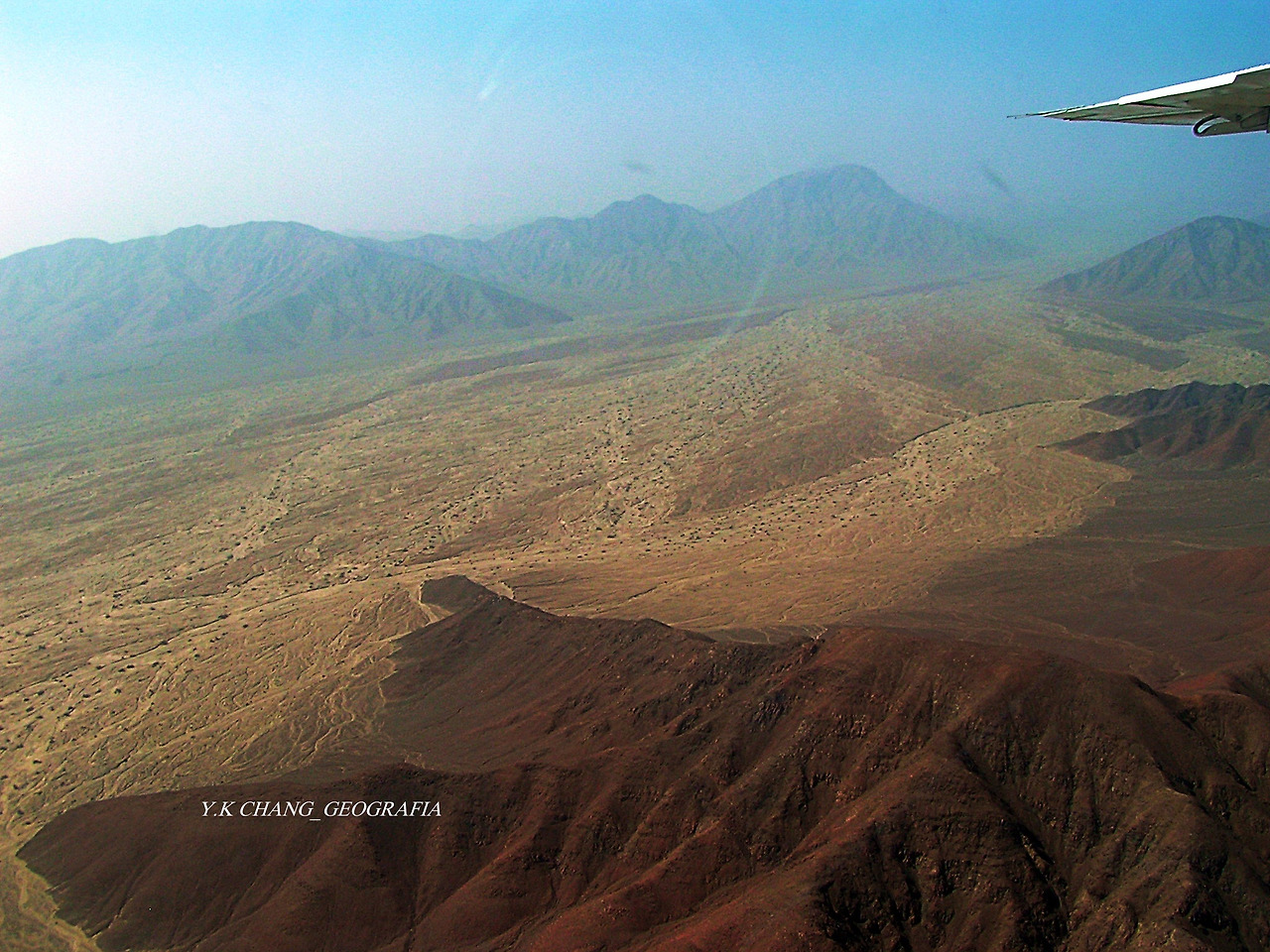 나스카 상공에 진입한 후 포착된 나스카 사막의 풍경