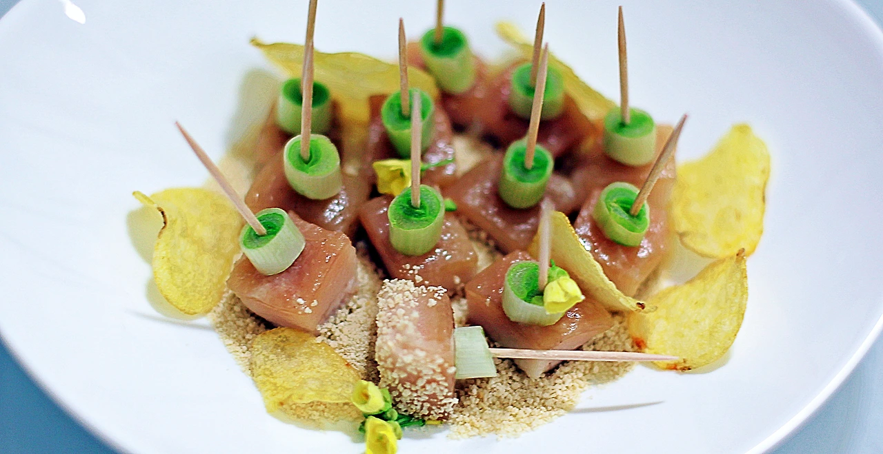 이날 사온 빵가루는 꼬지에 찔러둔 돼지 껍데기를 입에 넣고 씹는 순간 약간은 물컹한 느낌의 껍데기에 반전을 주는 식감을 주기 위함이다. 빵가루는 매우 아삭 거리며 입안을 천국으로 만든다. 그리고 꼬지에 끼워둔 대파 조각은 매콤한 맛을 풍기며 맛의 균형을 잡아준다. 이 리체타는 브런치 이웃들이 제공한 '돼지 껍데기 맛의 비결'에 영감을 얻은 것이다.