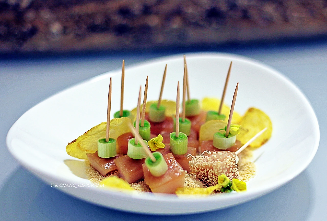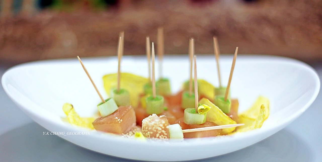 이날 돼지 껍데기는 간을 하지 않고 삶았으므로 감자튀김을 곁들였다. 꼬지를 한 입 물고 감자튀김을 입에 넣고 씹으면, 아삭 거리며 약간은 짭조름한 맛이 일품이다. 오늘처럼 바람맞아 추워진 날씨에 소주가 있었으면 좋겠지만 비노 비앙꼬와 곁들이면 기막힌 궁합을 이룬다. 이 같은 맛을 장문의 표어로 정리하면 이러하다.