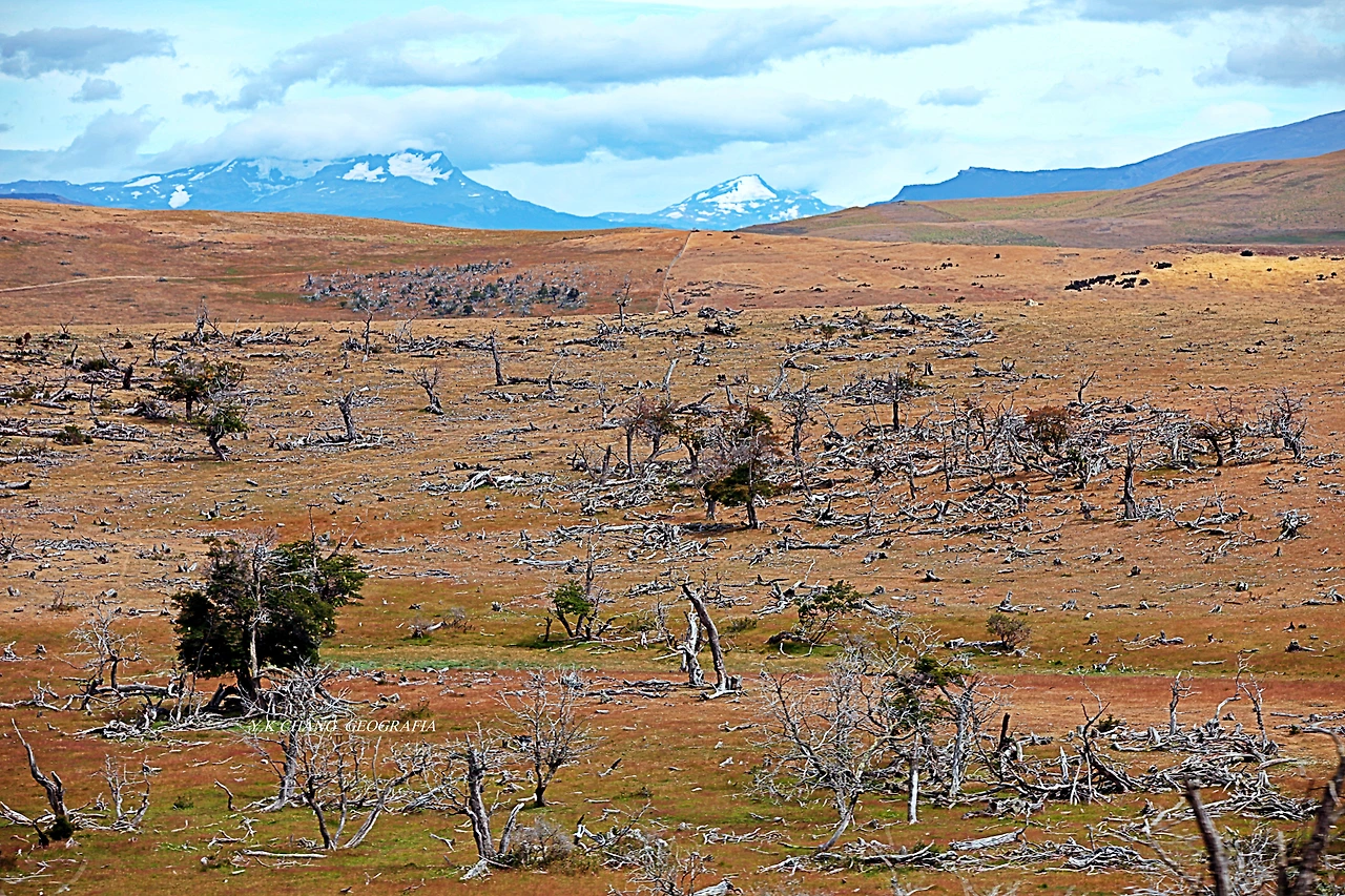 그들은 한 때 이 평원의 주인이었건만 어떤 이유로 발가벗긴 몸으로 고개를 떨구고 있는 것이다. 그들 너머 저 멀리 또레스 델 빠이네 국립공원이 머리에 하얀 눈을 이고 이들을 바라보고 있었다. 참 희한하지.. 어쩌면 황량해 보이는 벌판이 생명력을 얻어 여행자의 시선을 마구 자극하는 것이다.