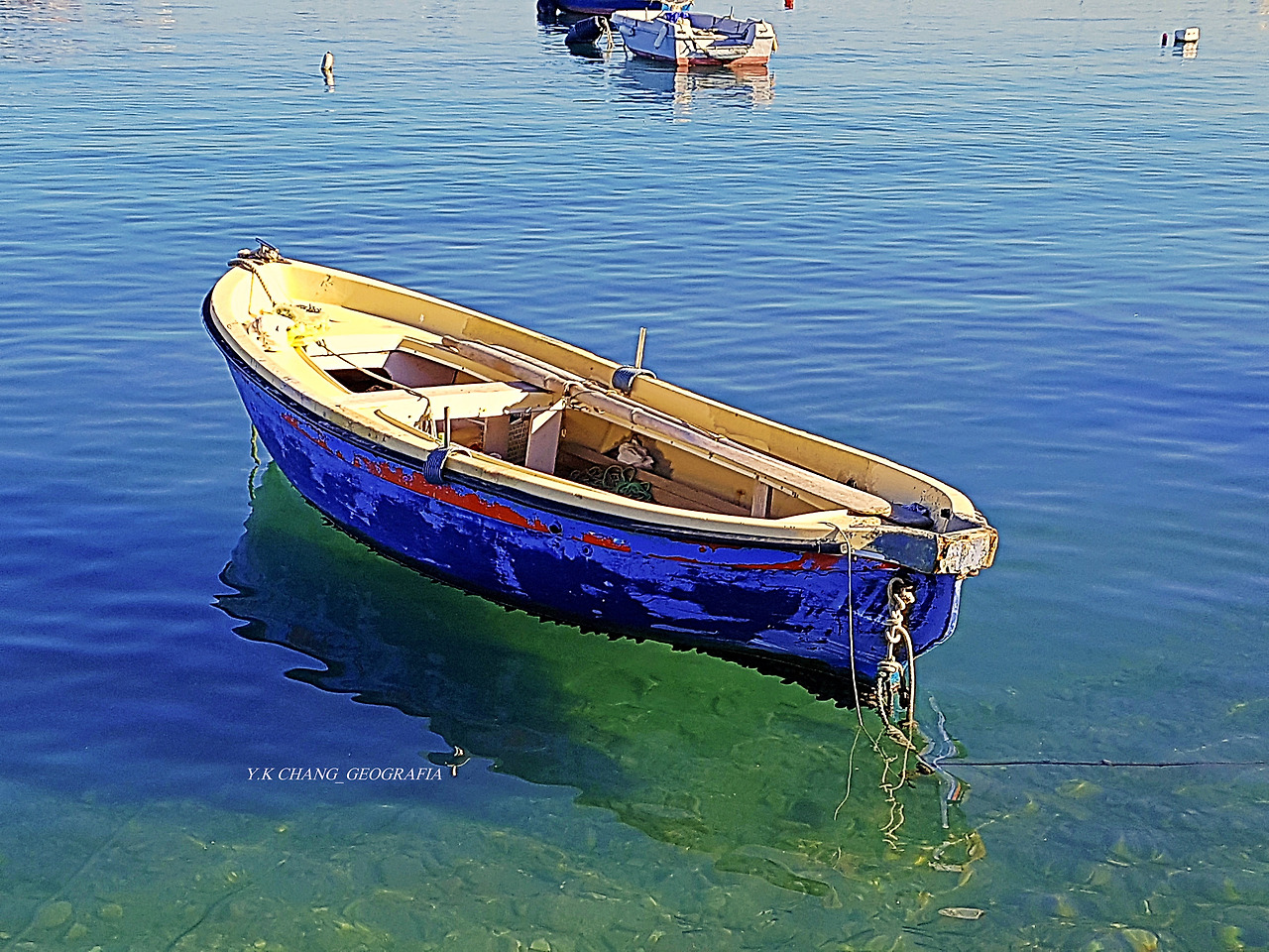 위 바다와 하늘의 경계를 그은 방파제가 아침운동 코스 중 하나이다. 이날 내항은 물론 방파제 바깥의 외항도 잔잔함 이상으로 진공상태를 방불케 했다. 또 내항의 바닷물은 수정처럼 맑게 변한 모습이다. 이곳에 길냥이들이 산다.