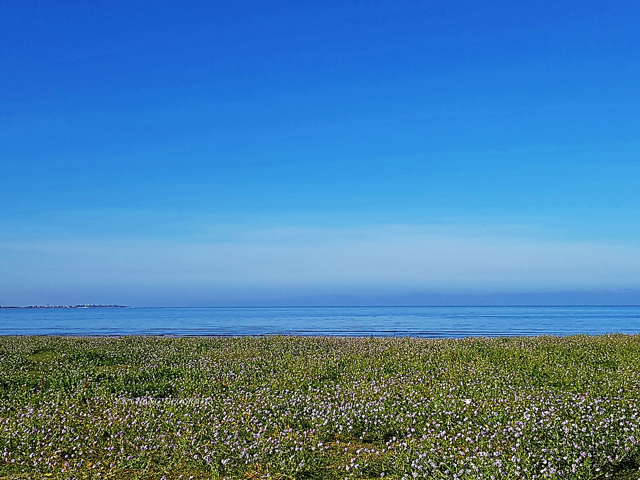 그런 바다가 또 하늘이 어느 날 얌전해진 것이다. 아니 얌전함이라기보다 잠이 든 듯했다. 마치 개구쟁이를 보는 듯한 것이다. 아이들은 신나게 잘 뛰어놀다가도 어느 순간에 잠잠해진 것을 보게 된다. 그 사이 잠이든 것이다. 장소도 가리지 않고 시도 때도 가리지 않고 피곤이 몰려오면 그냥 잠든 표정이 얼마나 귀여운지 모른다. 또 어떤 때는 밥을 입에 물고 끄덕끄덕 졸기도 한다. 요즘 이곳 날씨가 그런 개구쟁이를 닮은 것이다. 그 현장은 이런 풍경이었다.