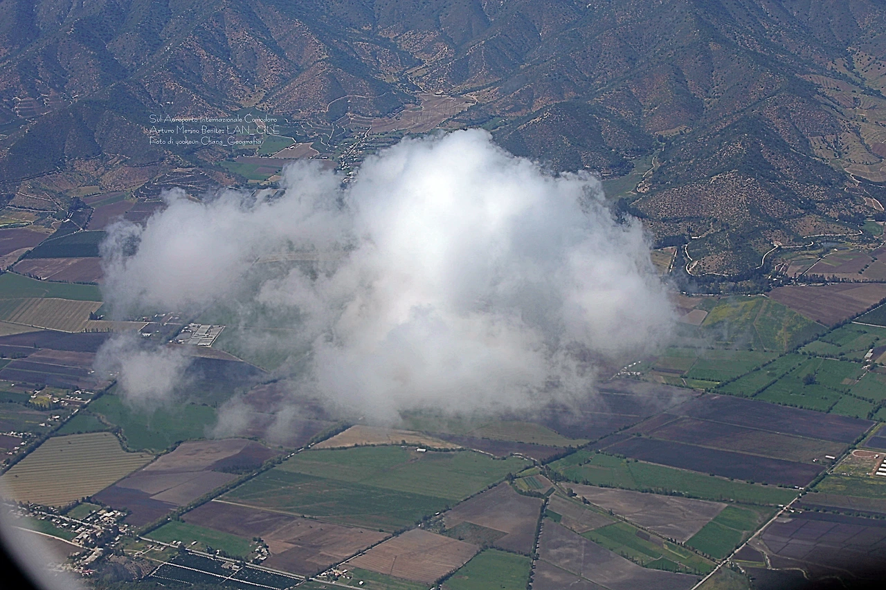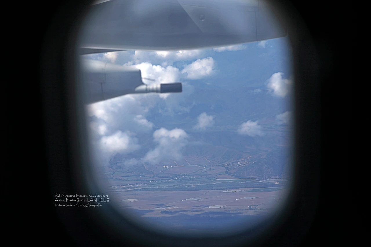 그곳은 승무원들이 기거하는 좁은 공간이었는데 작은 창 하나가 있었다. 승무원은 그 창을 가리키며 "사진 촬영을 여기서 하라"며 미소를 지으며 일러주었다. 비행기는 산티아고 공항 상공을 나지막이 선회 비행하면서 착륙 준비를 하고 있었다. 하늘에서 본 남반구의 봄은 파릇파릇한 새싹과 샛노란 유채꽃을 내놓고 지구 반대편에서 날아온 여행자를 맞이하고 있었다. 그녀의 세심한 배려와 카메라가 없었다면 이런 풍경들은 그저 마음속에서만 존재했을 테지 아마도..