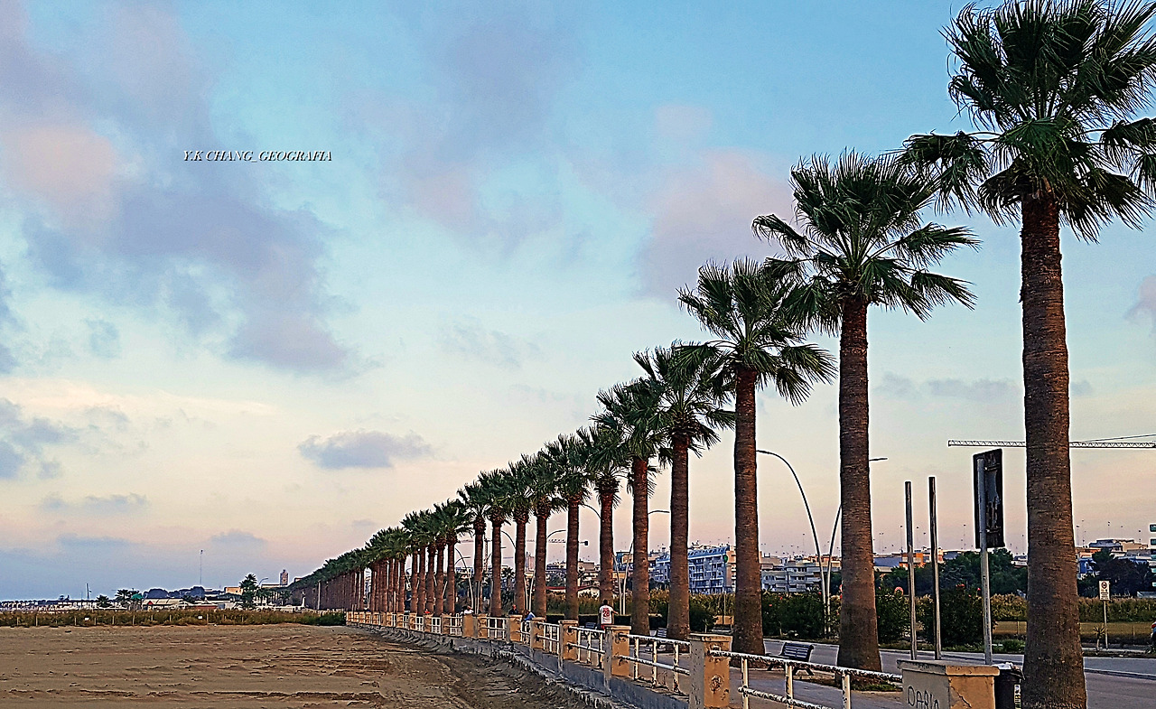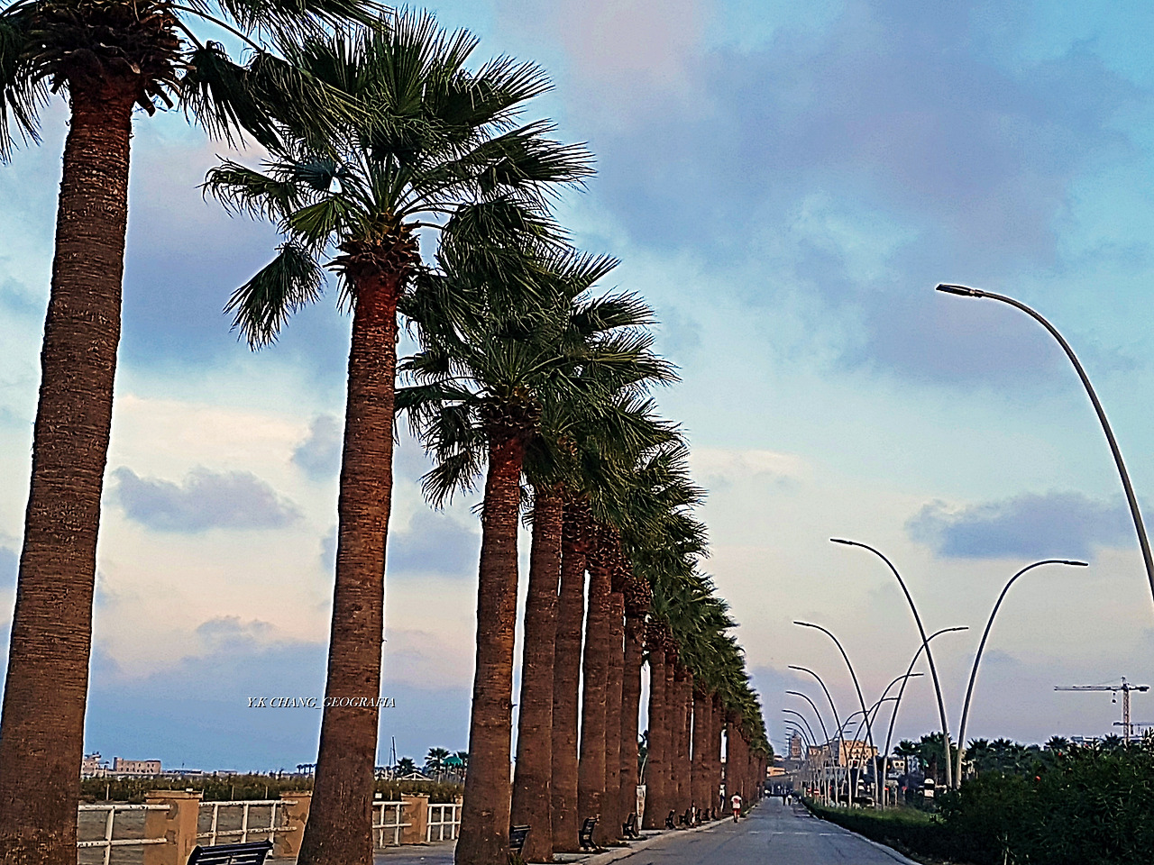 그러한 잠시 나를 흡족하게 만든 풍경이 곧바로 내 앞에 나타났다. 지인의 안내로 시내를 둘러보고 지근거리에 위치한 바닷가로 나서면서 전혀 새로운 풍경을 만나게 된 거이다. 15미터는 더 될까.. 대략 5층 아파트보다 더 높은 종려나무 가로수길이 길게 펼쳐져 있는 것이다. 이때만 해도 가로수길이 어디까지 뻗어있는지 알 수 없었다.