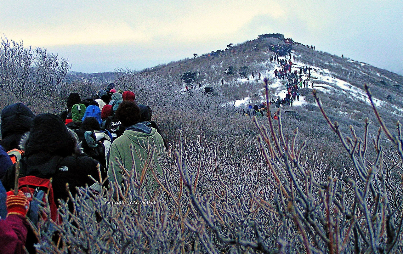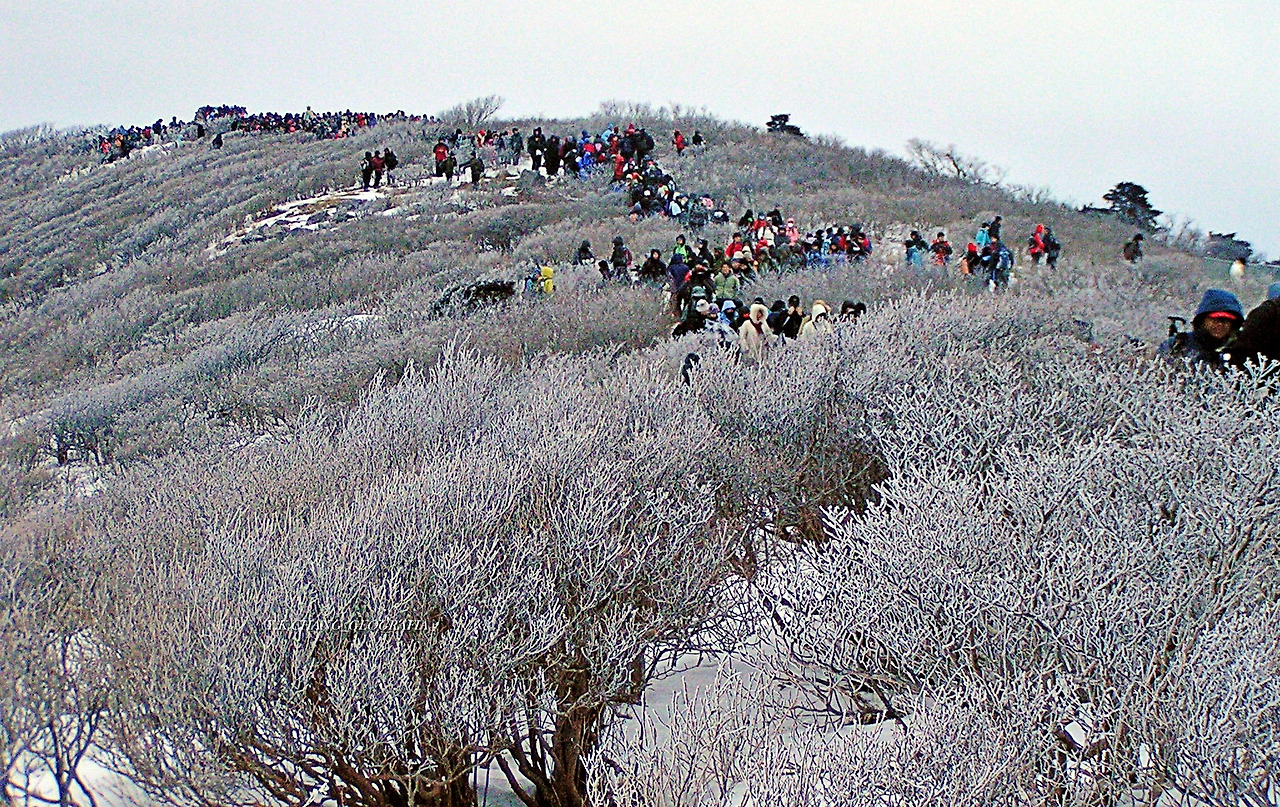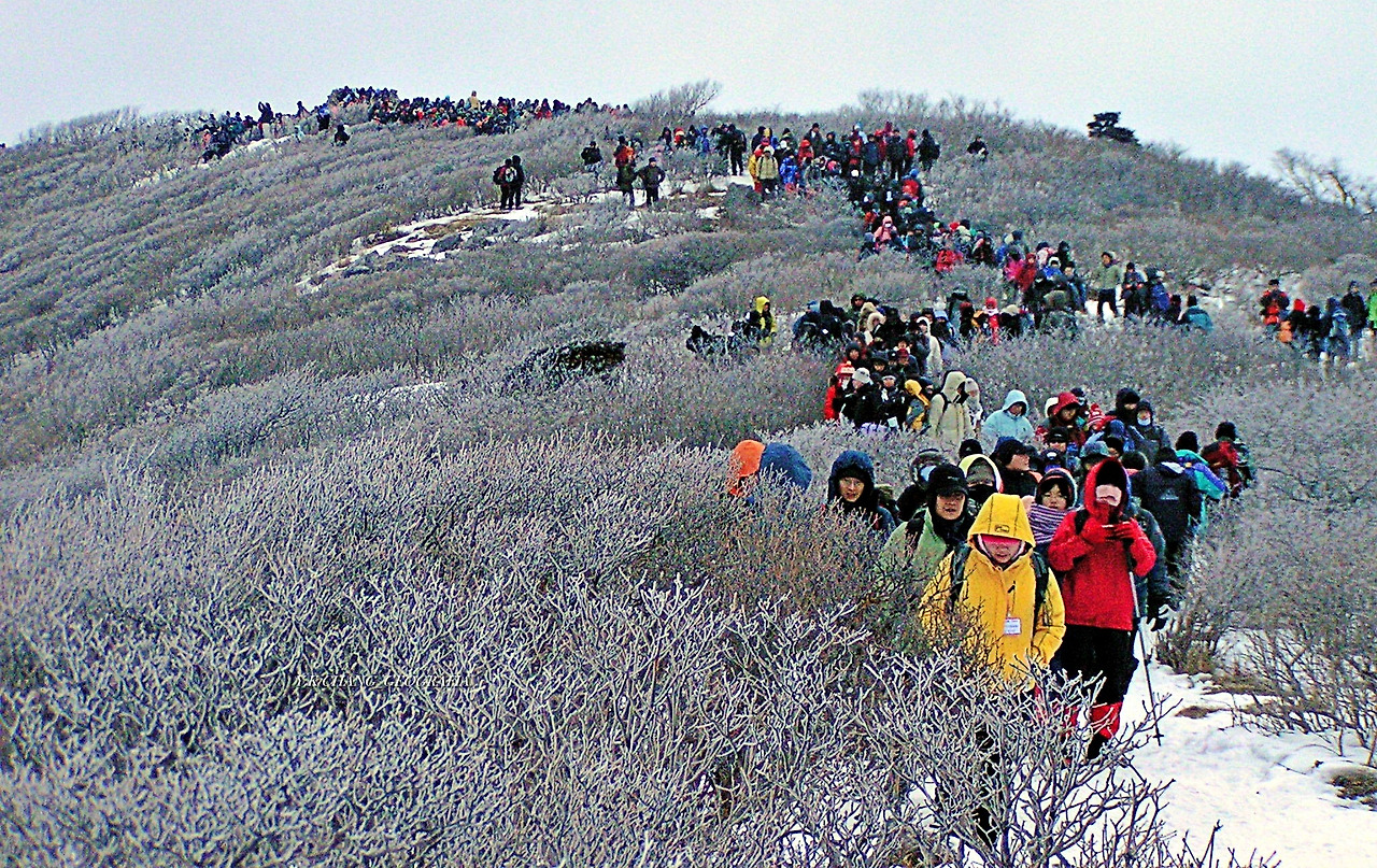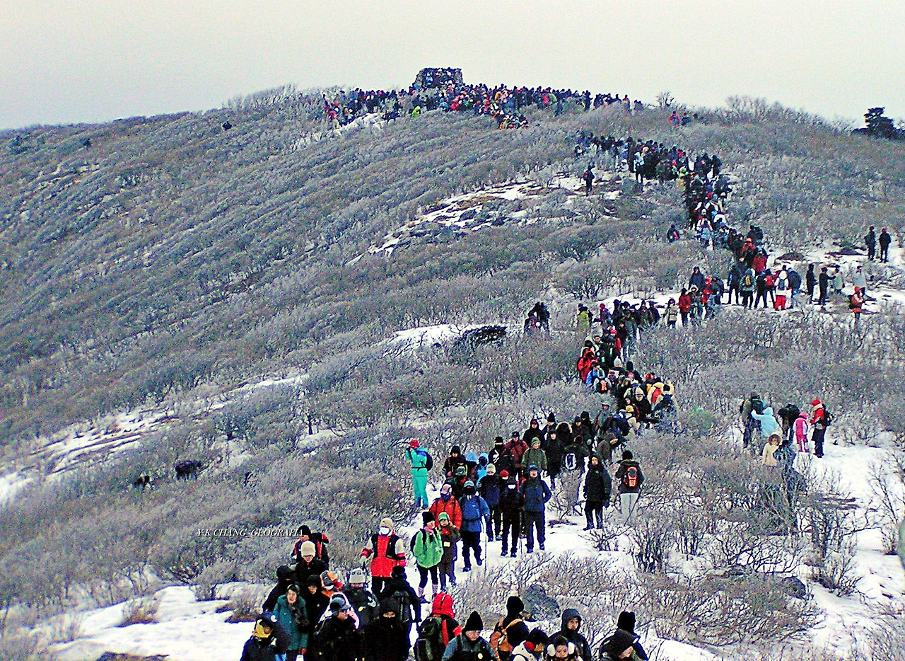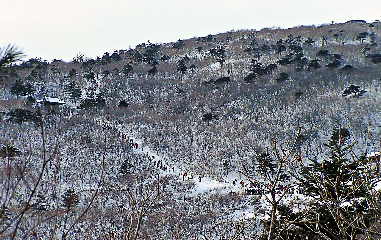 이른 새벽부터 줄지은 인산인해의 태백산 등산로