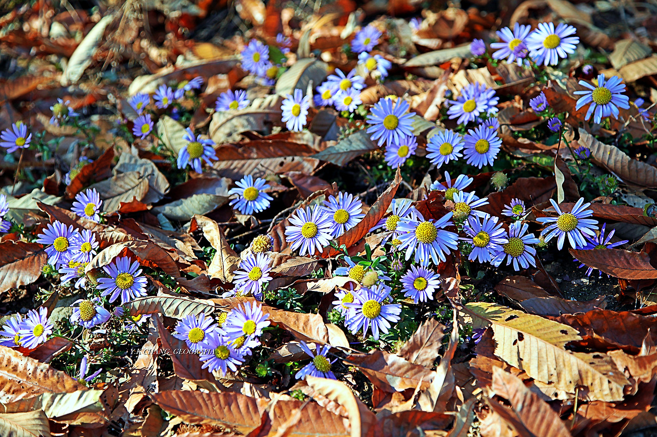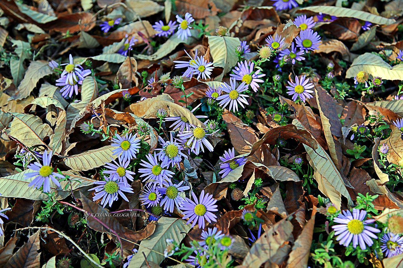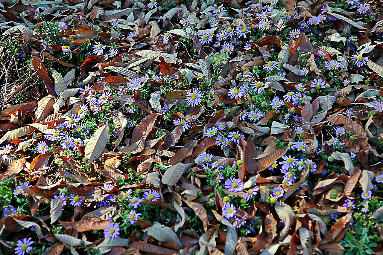 이파리를 다 떨구어가는 참나무 아래서 잎을 헤집고 나오거나 뒤집어쓴 채 이방인을 만나게 된 것이다. 토양이 척박해 보이지도 않는데 녀석들의 키는 '기다림'이라는 꽃말과 조금 다른 모습이었다. 그리고 납작하게 엎드려 보랏빛 꽃잎을 내놓은 이들은 다른 꽃말 '그리움'을 쏙 빼닮았다. 주로 음지에서 자란 녀석들이 양지를 그리워하면서 만추의 땡볕 한 알 조차 소중하게 여긴다고나 할까..