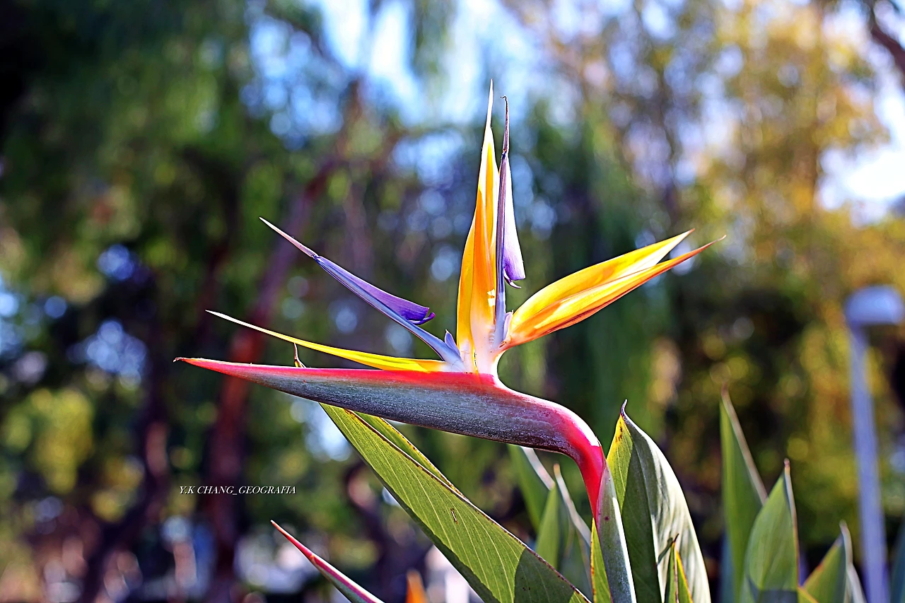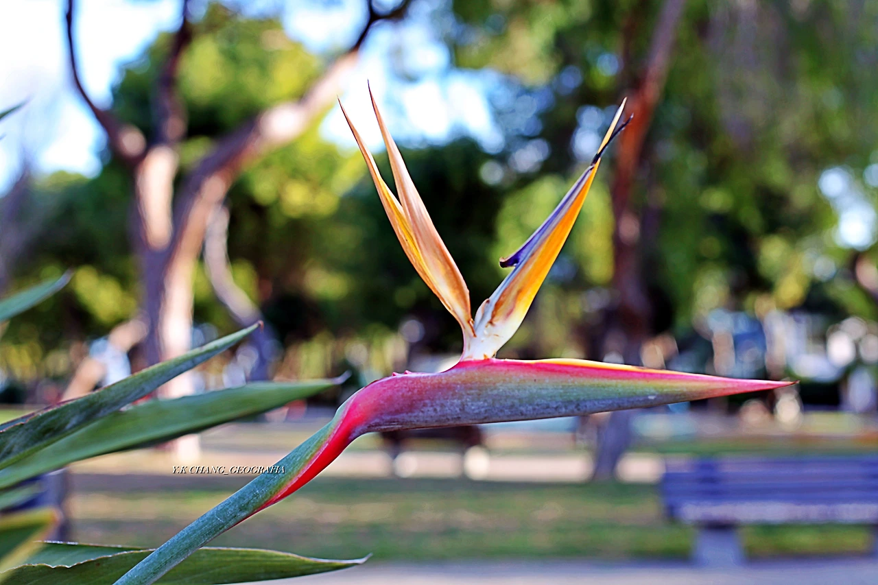 자료사진은 이틀 전 공원의 대리석으로 만든 원형극장 주변에 심어둔 극락조가 꽃을 피운 것으로 뭇사람들을 유혹하고 있는 풍경이다. 한국에서 방영 된 E방송의 다큐멘터리에서 극락조 수컷은 화려한 모습으로 암컷을 유혹하는 장면을 본 적이 있다. (아래 영상 참조)
