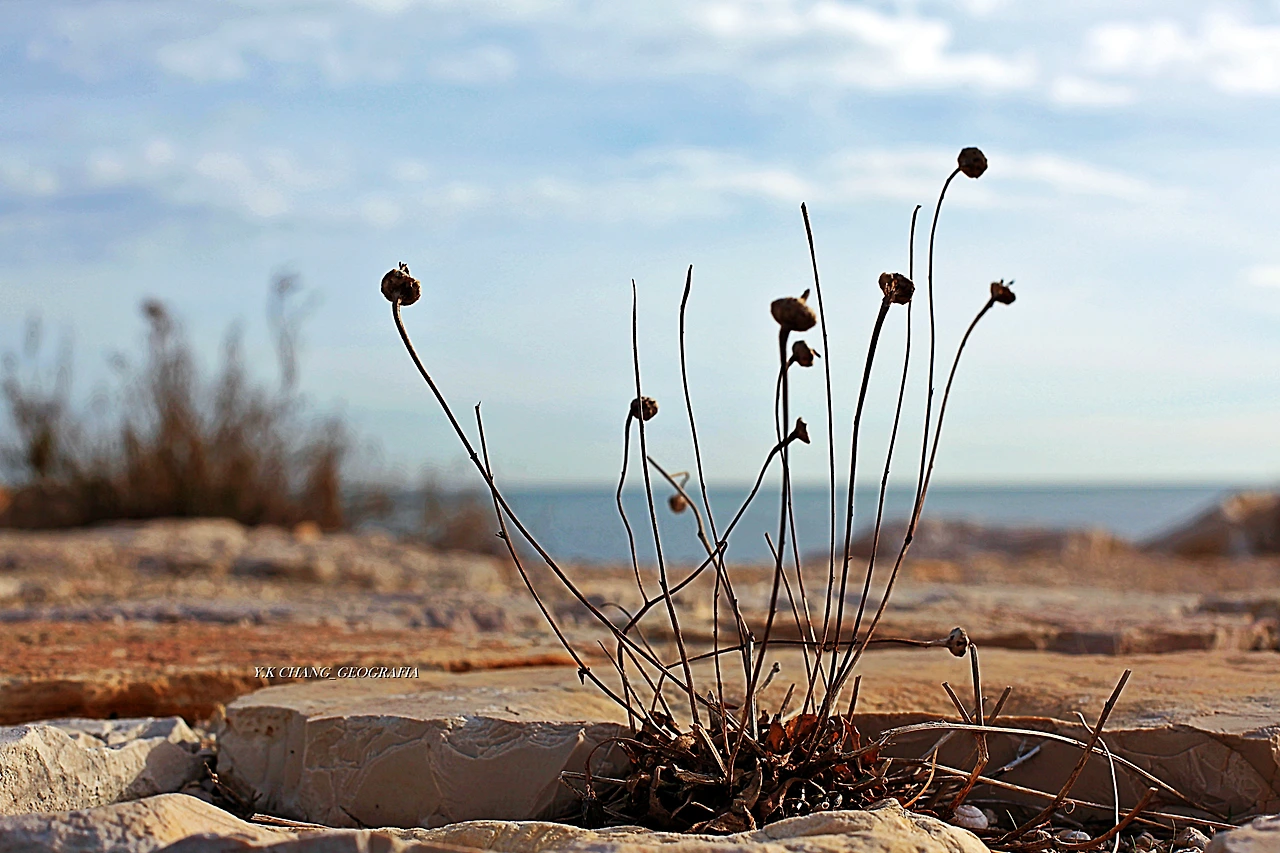 지난겨울의 흔적.. 방파제 입구에서 만난 마른 풀꽃이 미라로 변했다.