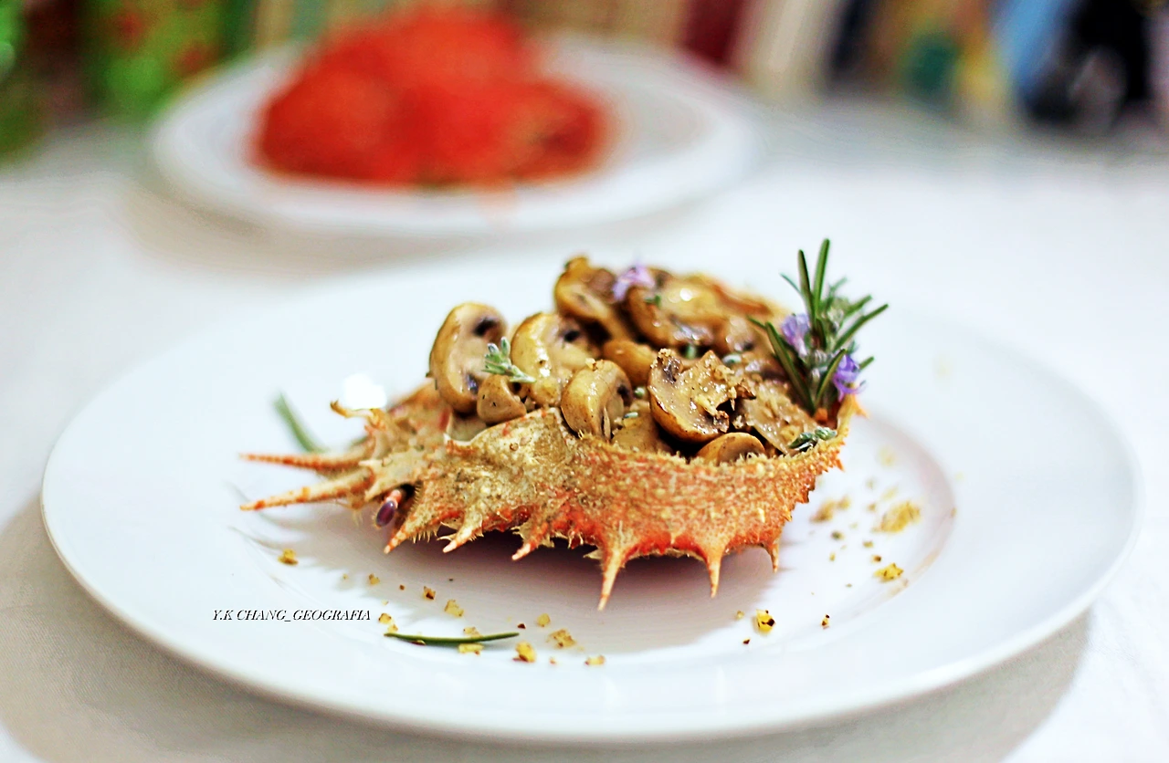 그런 아내를 위해 바를레타의 해산물은 비밀에 부쳐두었다. 당신이 오시면 깜짝쇼를 펼칠 심산이었던 것이다. 오늘 끼적거리고 있는 천국의 맛 게껍딱 양송이 요리도 그중 하나이다. 주지하다시피 게의 껍질 부분에 있는 육즙은 천연조미료 맛을 내기 때문에 게껍딱으로 불리는 게껍딱 요리에 제격이다.