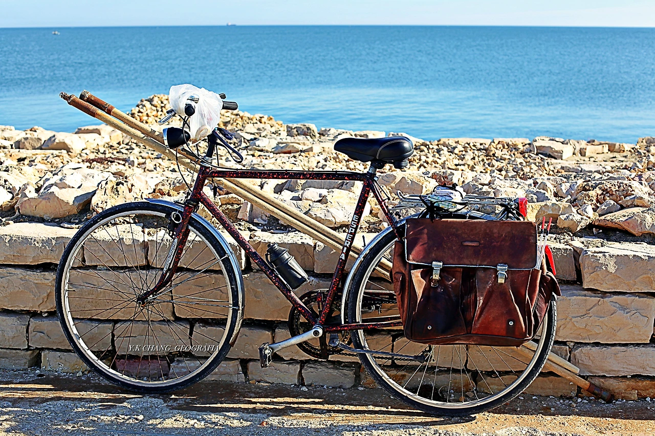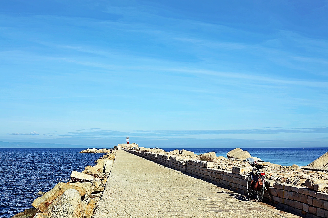 방파제 위를 걷다 보니 이탈리아 스러운 자전거 한 대가 보인다. 자전거 곁에 묶어둔 기다란 작대기 두 개는 문어를 잡는 도구이다. 막대 한쪽 끝에 뾰족한 삼지창을 묶고 미끼를 달아 물속에 담그면 문어가 입질을 하는 순간 낚아채는 방식이었다.