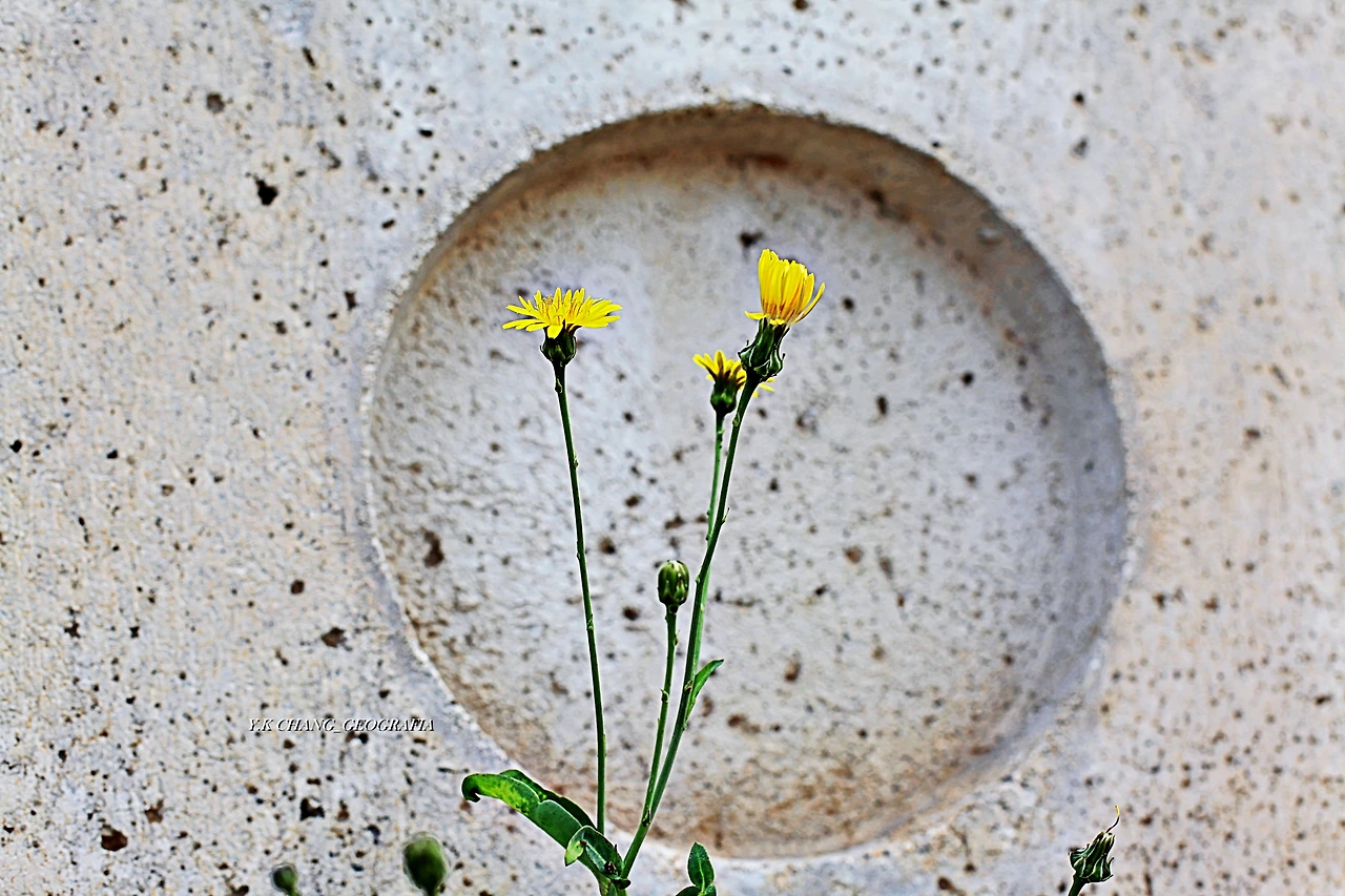 아침운동을 끝마치고 나면 습관처럼 들르는 곳이 있다. 그곳은 바닷가에서 멀지 않은 곳으로 작은 언덕 위에 대형마트가 있는 곳이다. 웬만하면 냉장고에 음식을 보관하지 않으므로 발품만 조금 팔면 신선한 식품들을 구입할 수 있는 곳이다. 바닷가로부터 이어지는 동선은 나지막한 언덕으로 이어지는데 그곳에 콘크리트로 만든 구조물(축대)이 쌓여있었다. 구조물 앞에는 좁은 틈이 있었다. 그곳에 샛노란 풀꽃이 피어있었던 것이다.